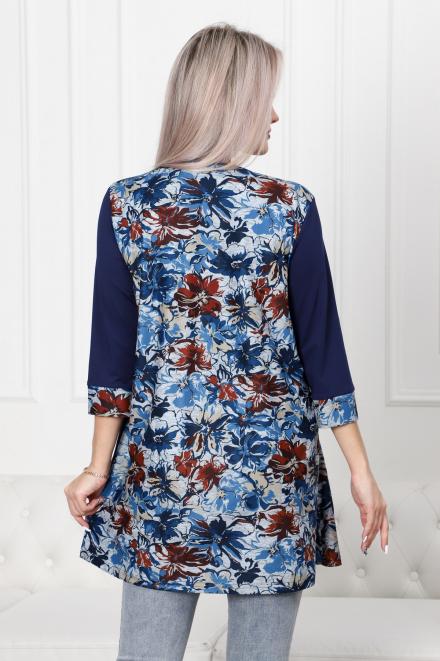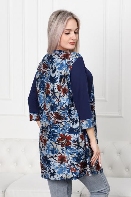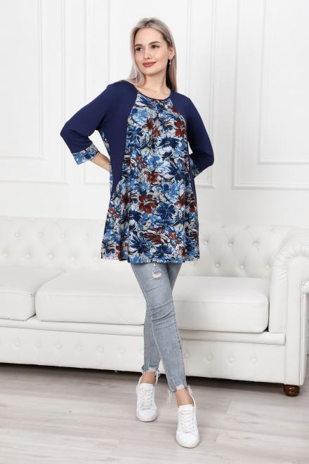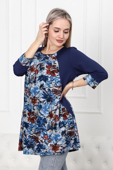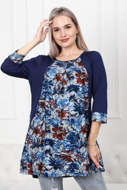 Блуза женская из кулирки Матильда горошек на тёмно-синем макси