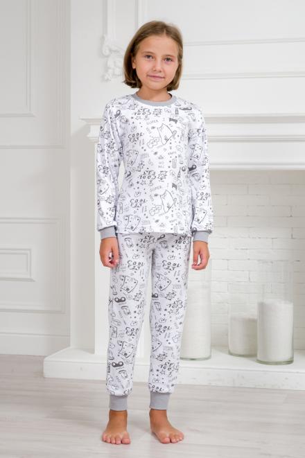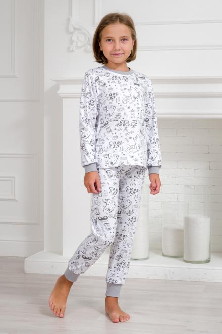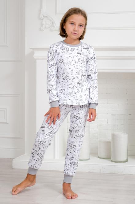 Брюки женские из футера трехнитка с начесом Сова серый меланж