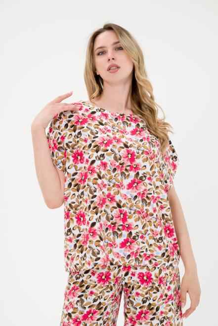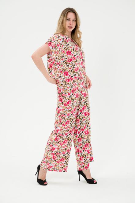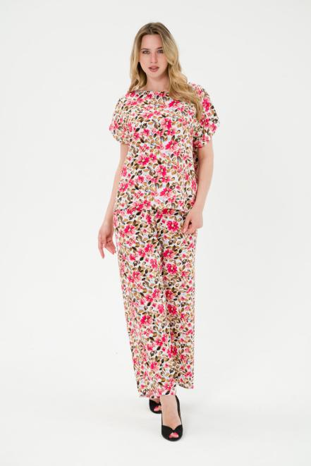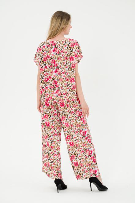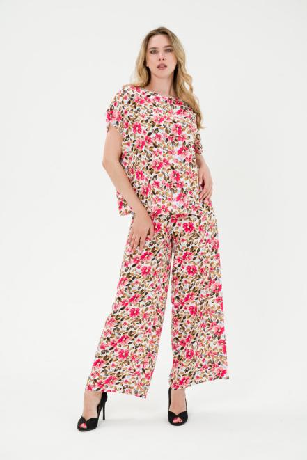 Костюм женский из туники и брюк штапель Диана цветы на белом