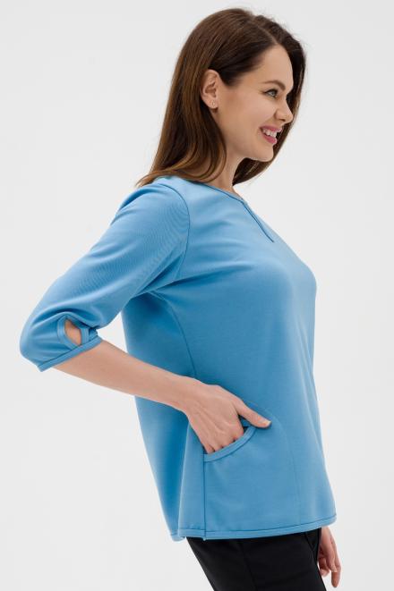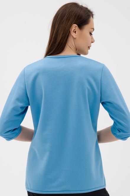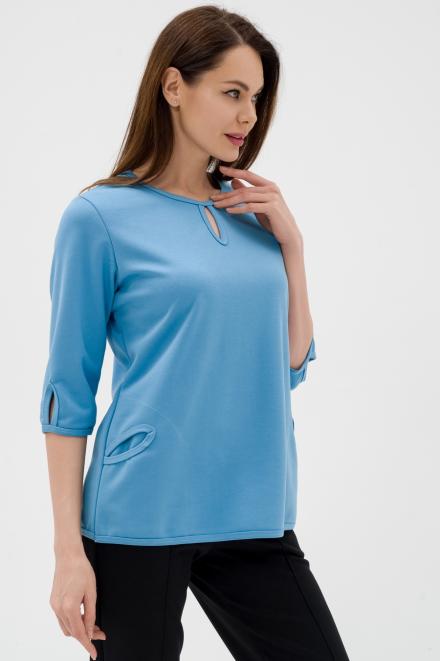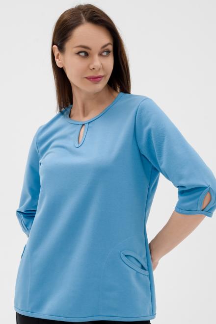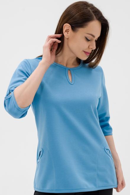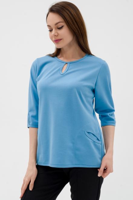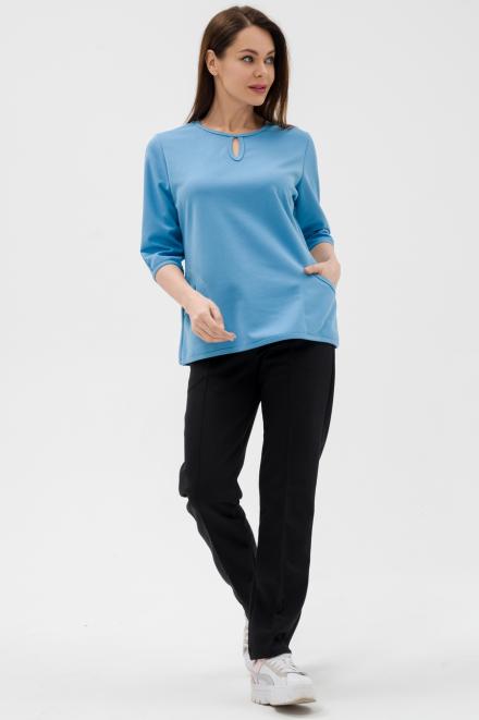 Блуза женская из кулирки Матильда горошек на тёмно-синем