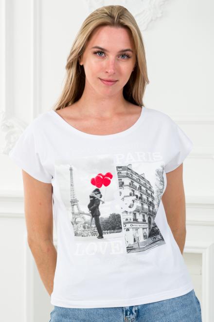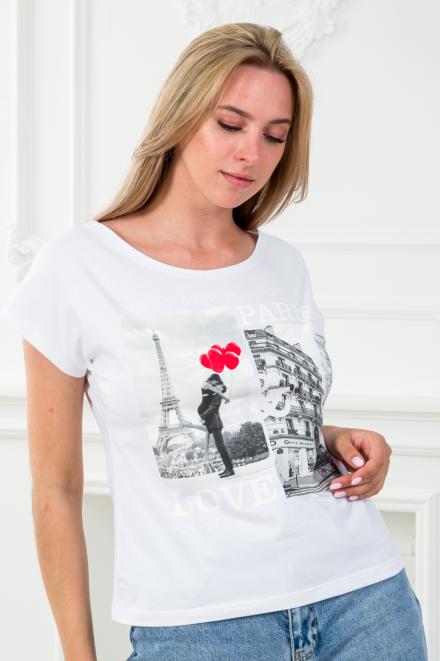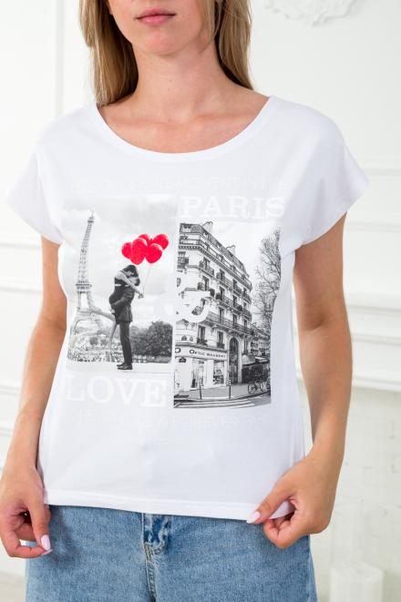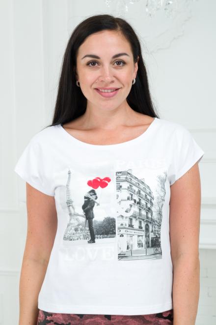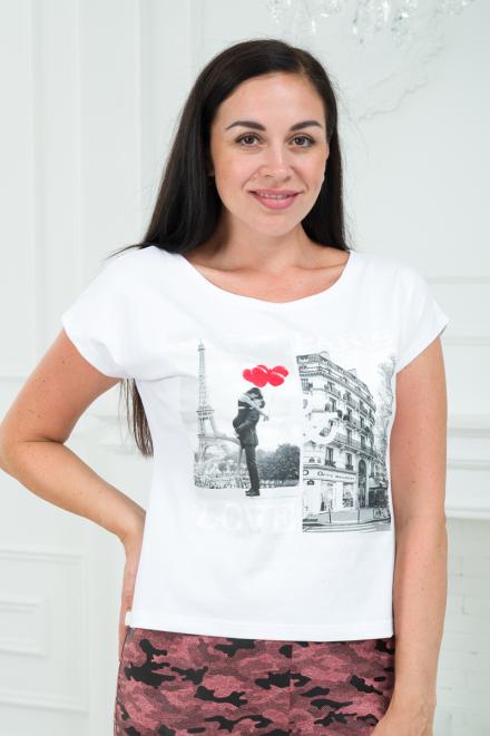 Футболка женская со спущенным плечом из кулирки Лира белый с принтом Paris