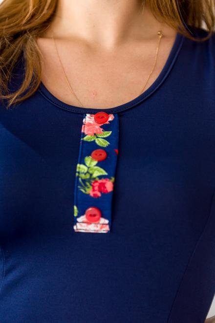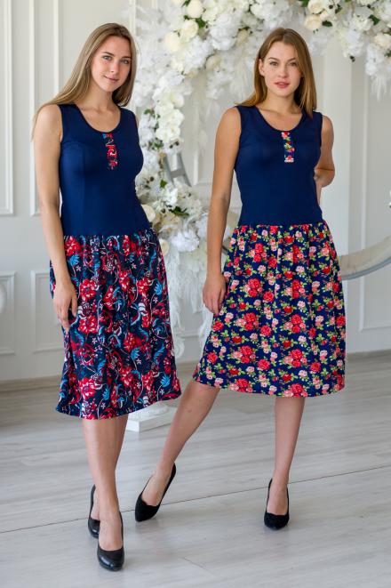 Блуза женская из кулирки Матильда горошек на тёмно-синем макси
