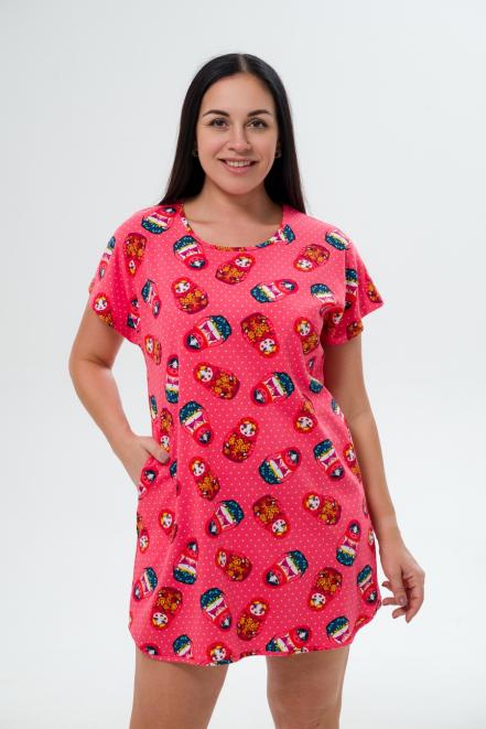 Ночная сорочка из интерлока длинный рукав Соня розовый