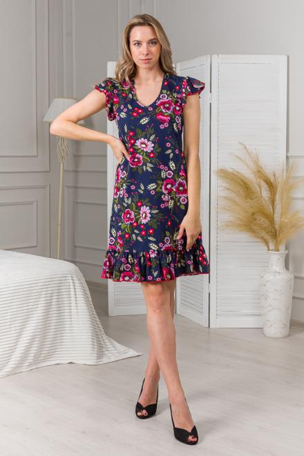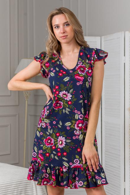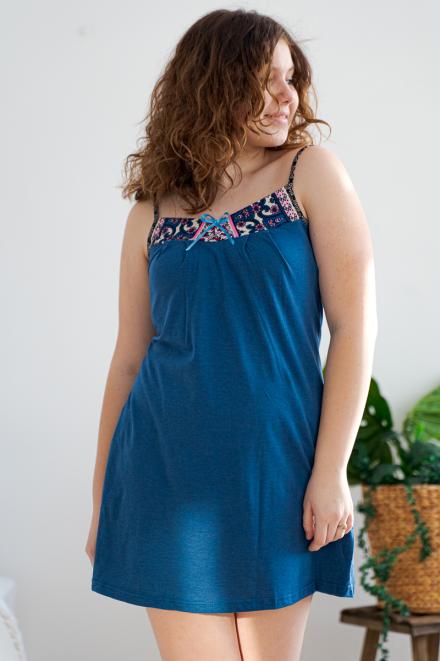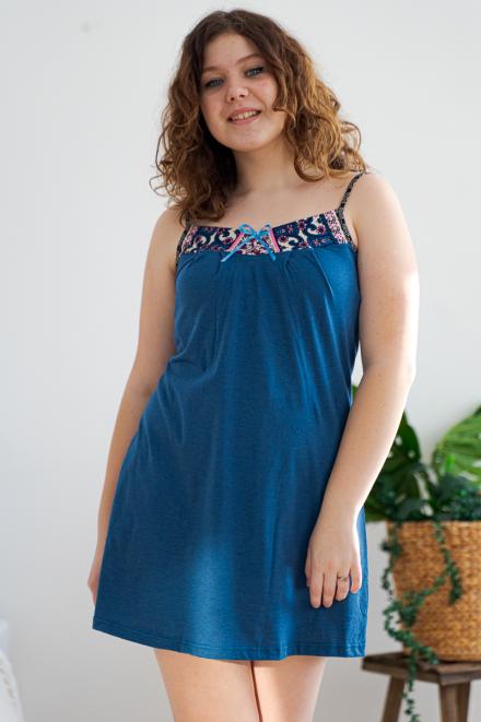 Ночная сорочка на бретелях из кулирки Лисандра индиго