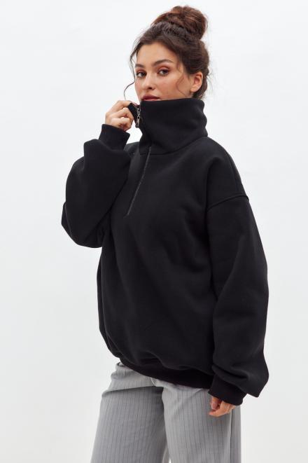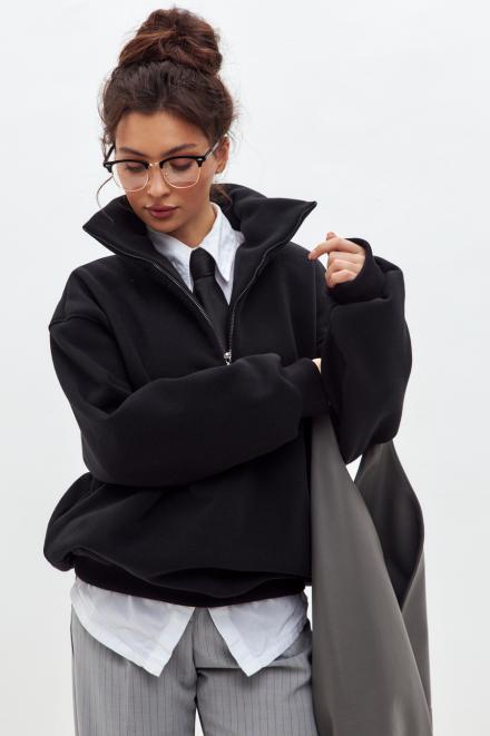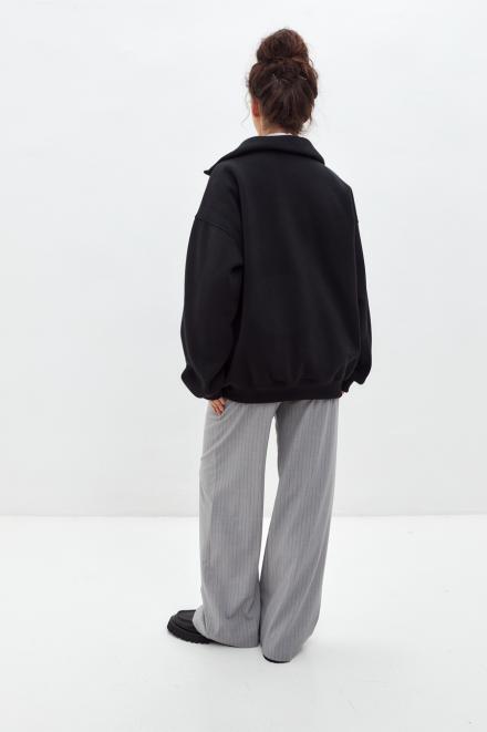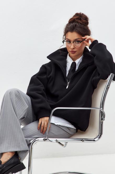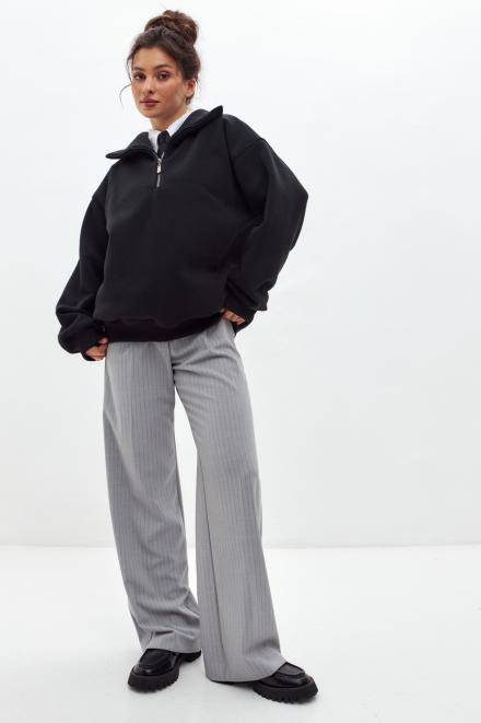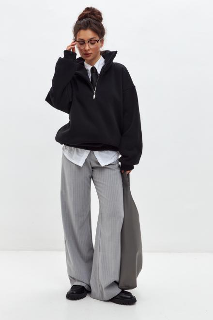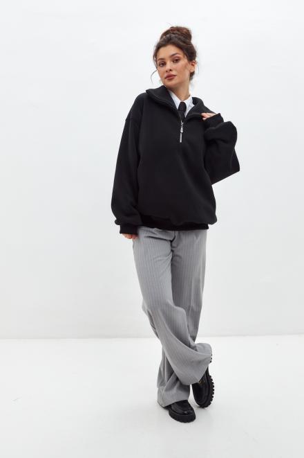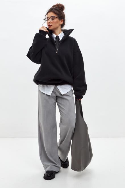 Брюки женские из футера трехнитка с начесом Сова черный макси