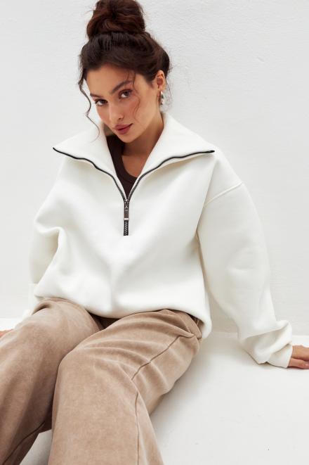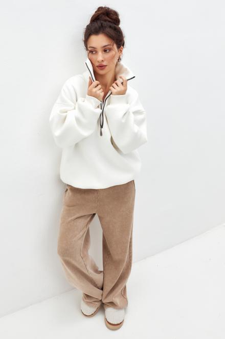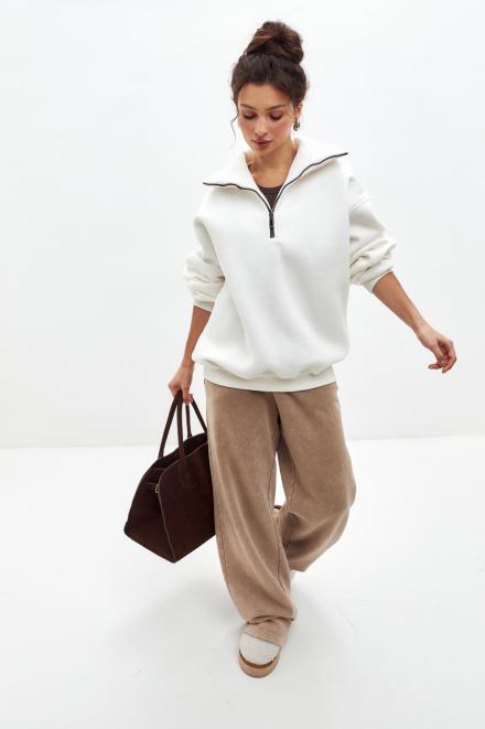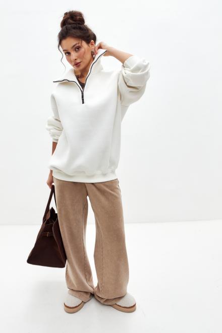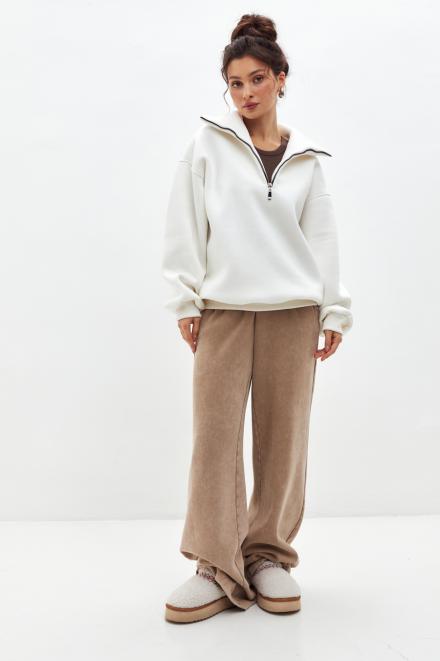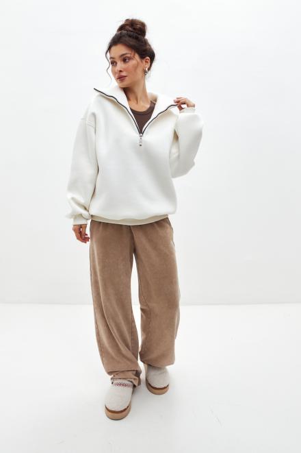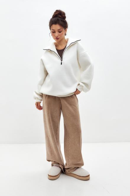 Брюки женские из футера трехнитка с начесом Сова экрю