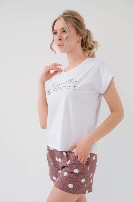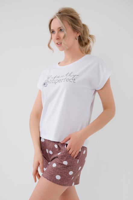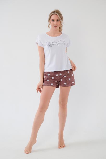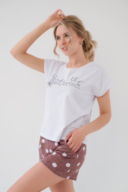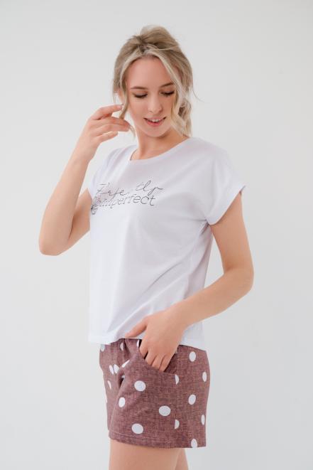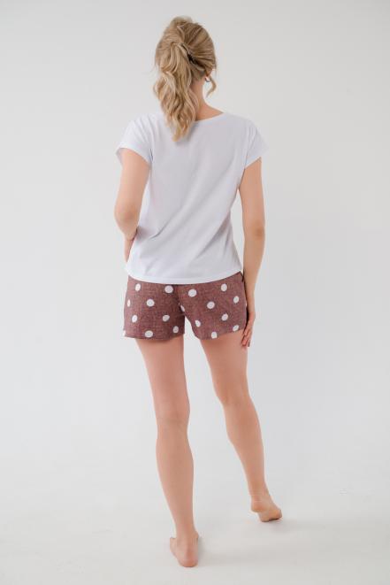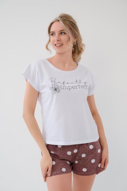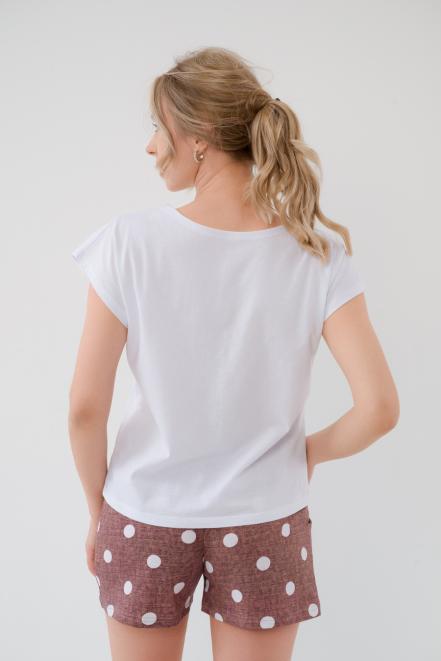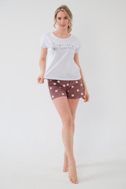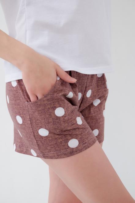 Пижама женская из футболки и шорт из кулирки Алиса горох бордо
