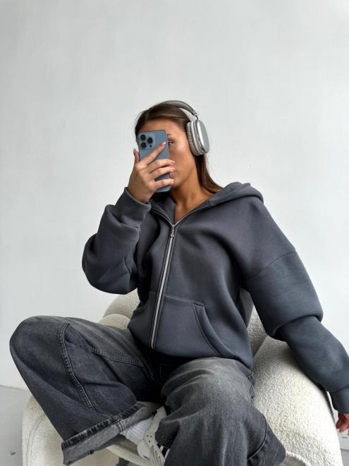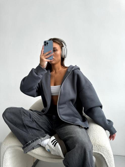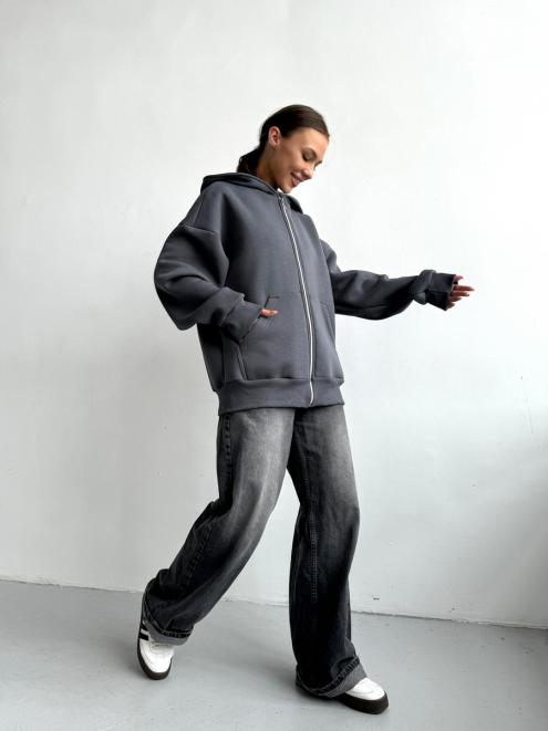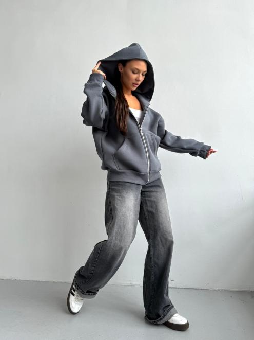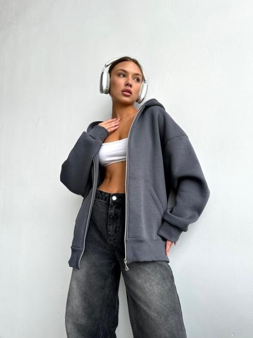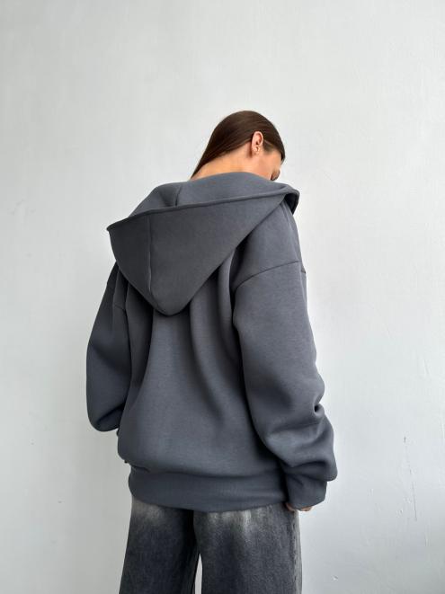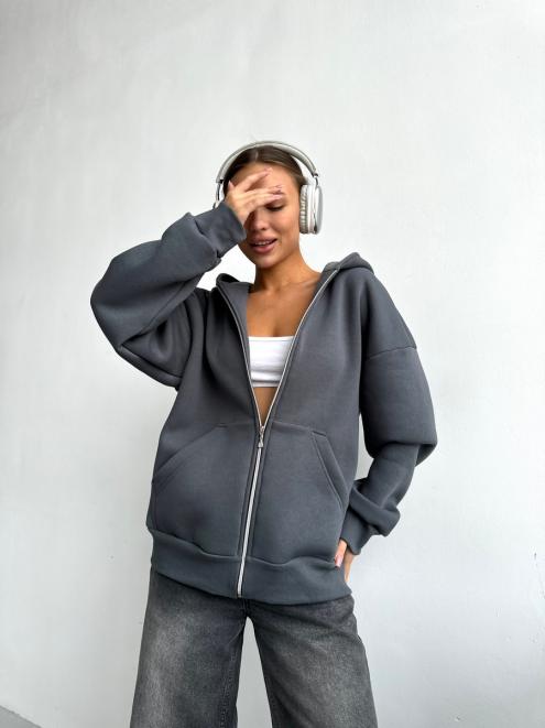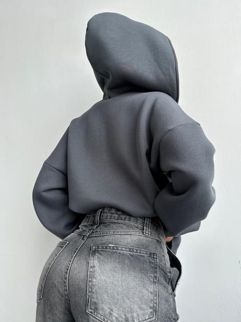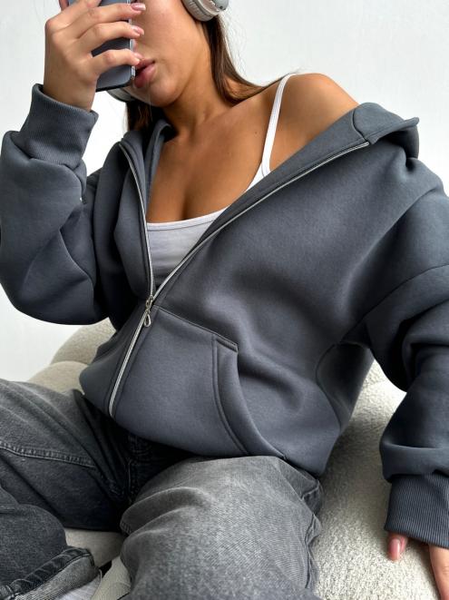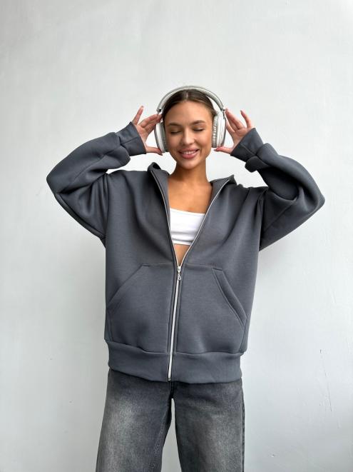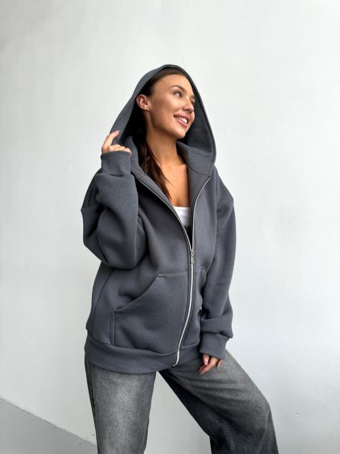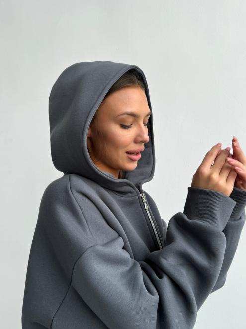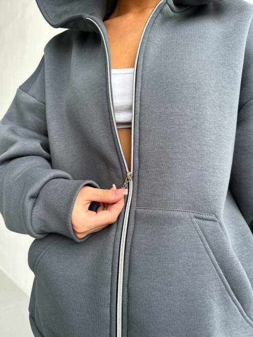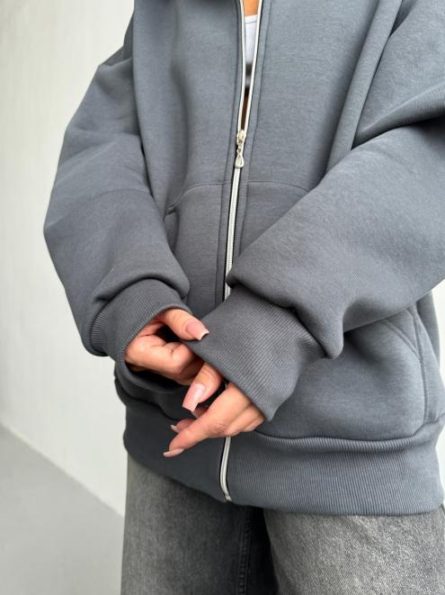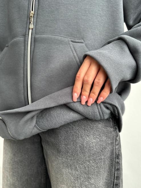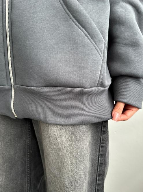 Толстовка на молнии из футера 3х нит.начес Сова серый
