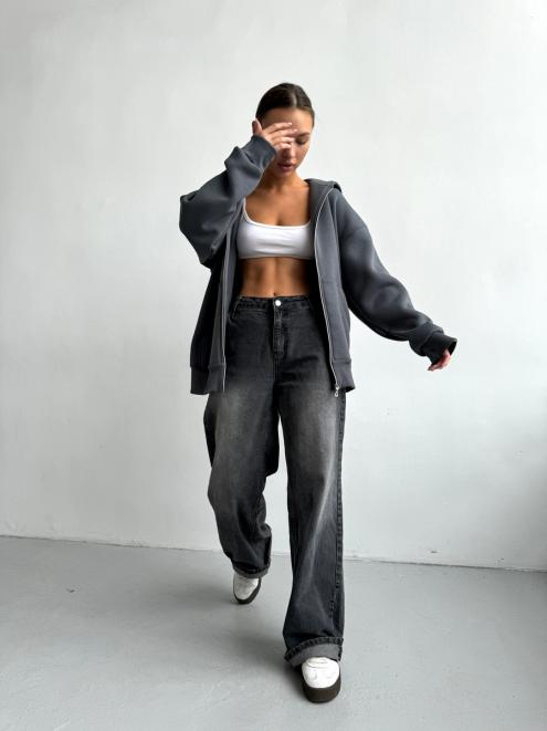 Брюки женские из футера трехнитка с начесом Сова серый меланж макси