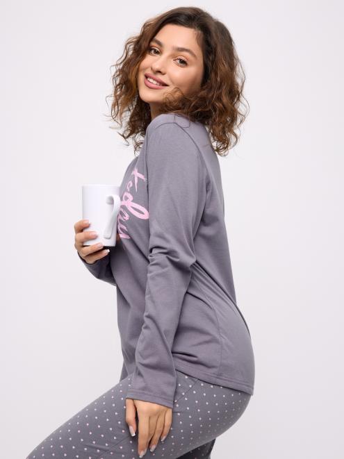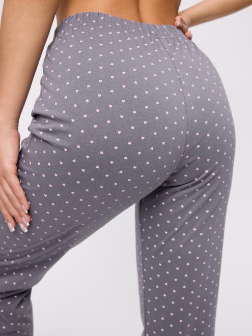 Брюки женские из футера трехнитка с начесом Сова серый меланж