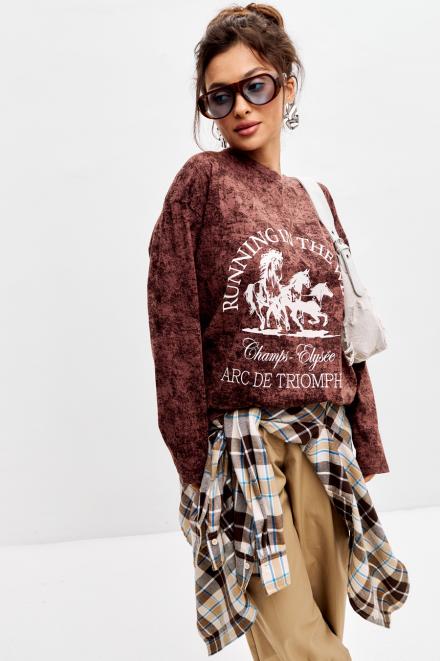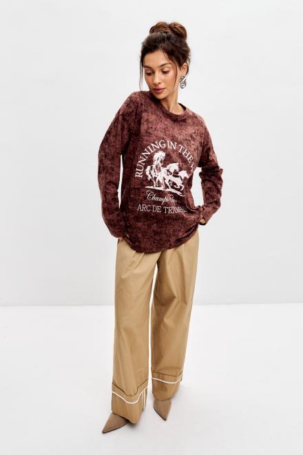Лонгслив женский из кулирки оверсайз каштановый макси