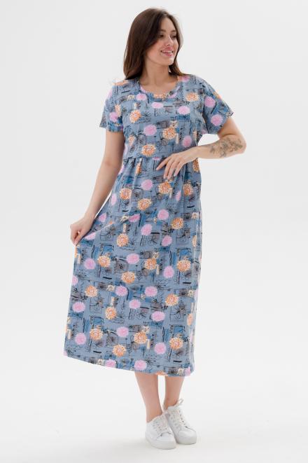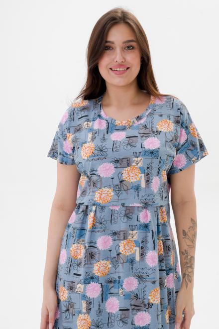 Ночная сорочка из интерлока длинный рукав Соня голубой