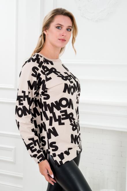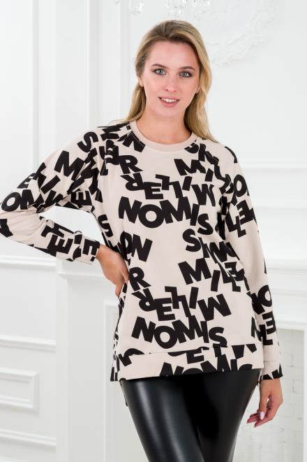 Брюки женские из футера трехнитка с начесом Сова экрю макси
