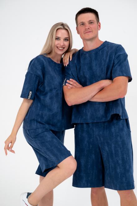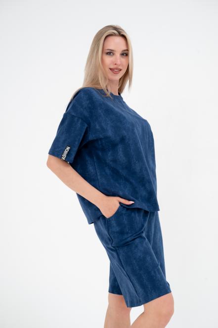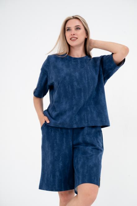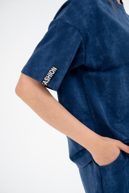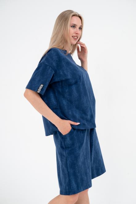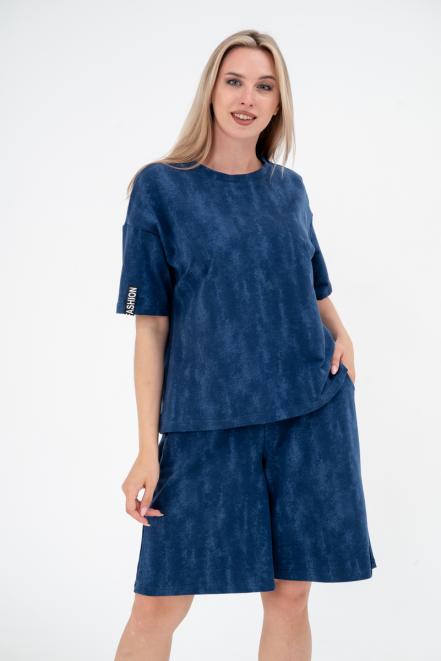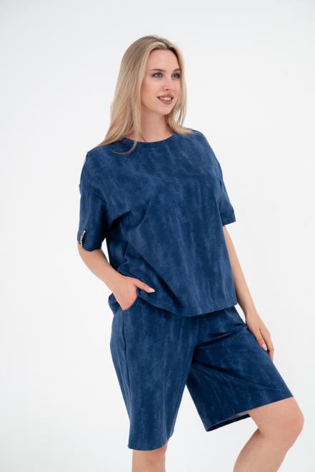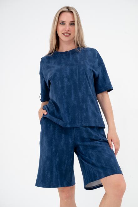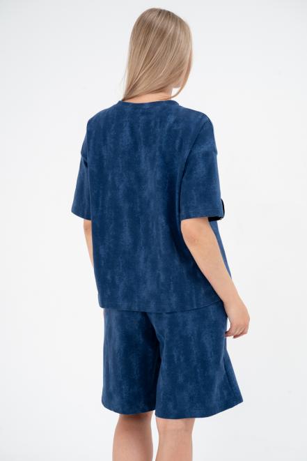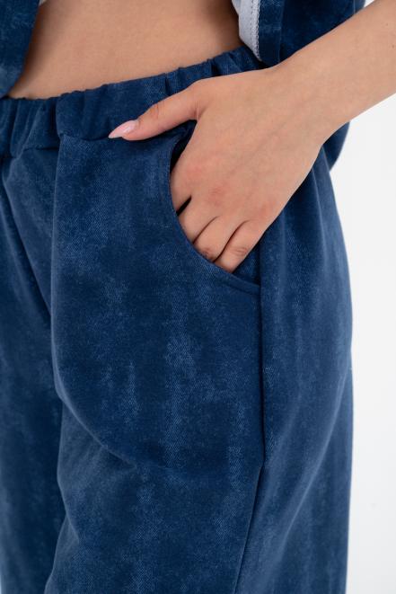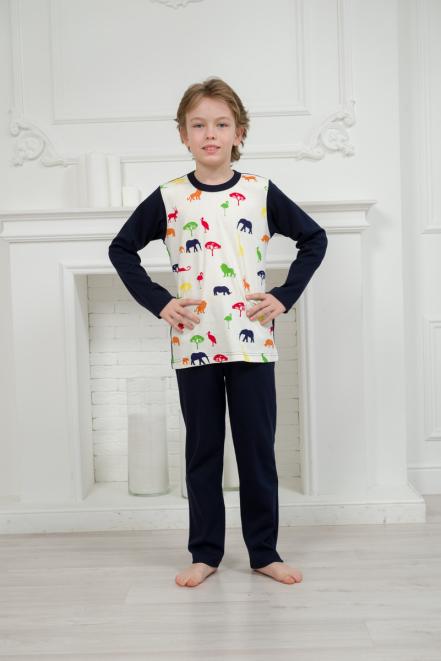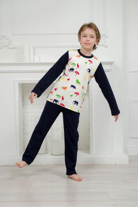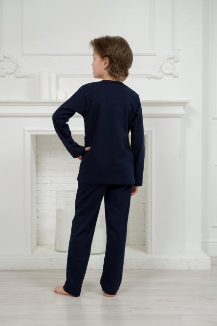 Пижама подростковая из джемпера и брюк без манжет из интерлока Сафари темно-синий
