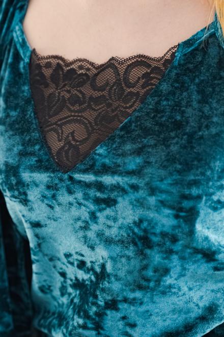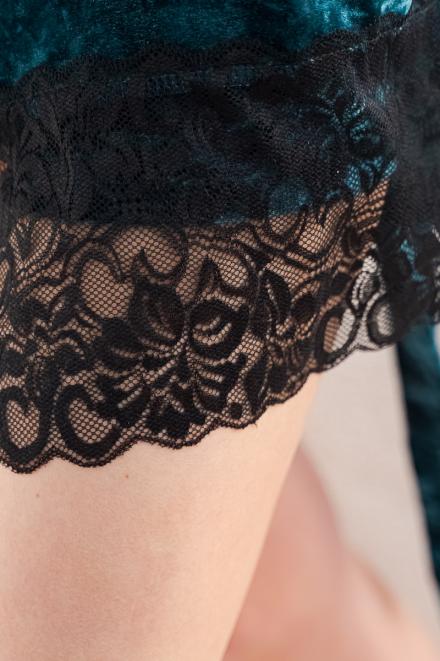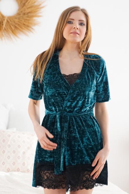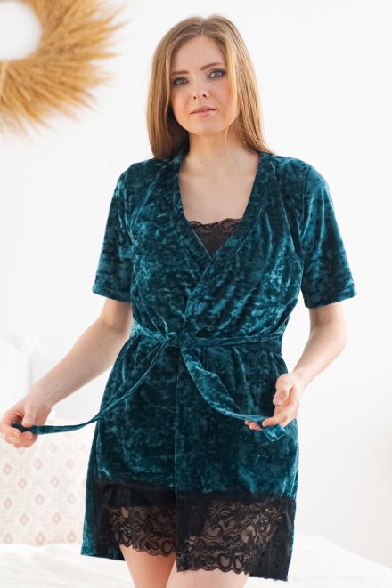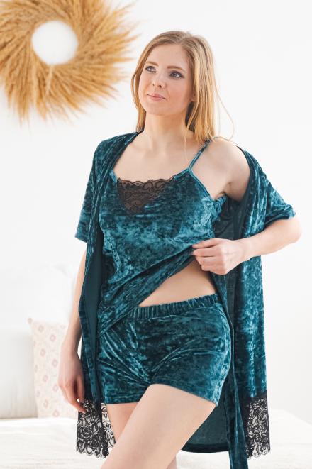 Пижама женская из пеньюара, топа и шорт из бархата Интрига малахит