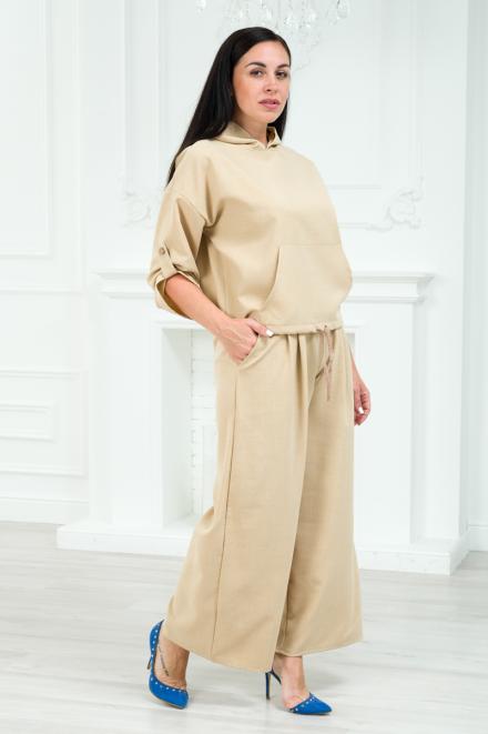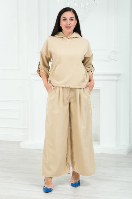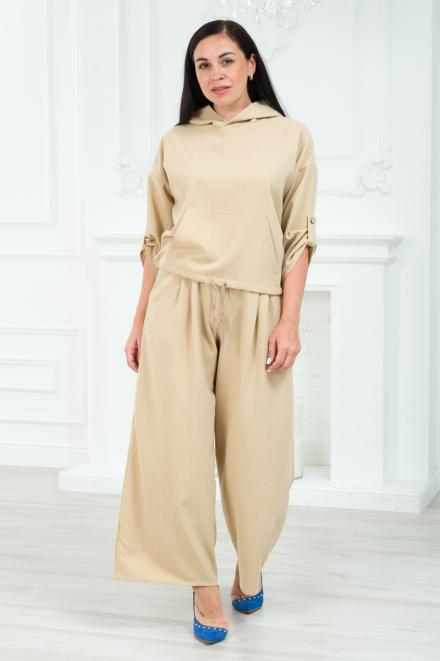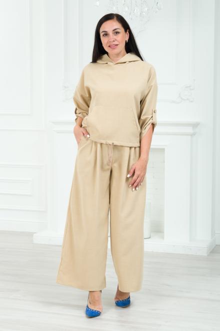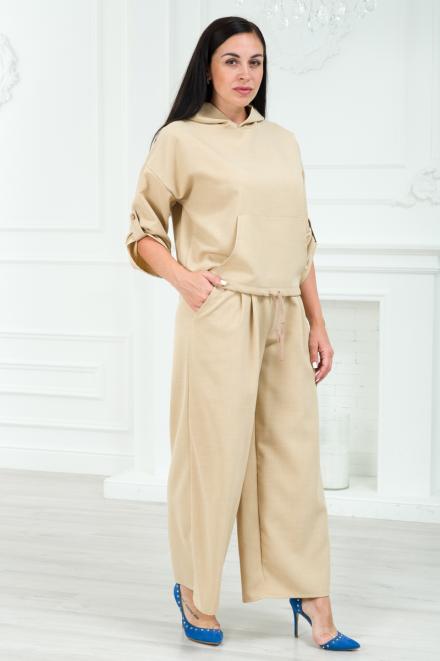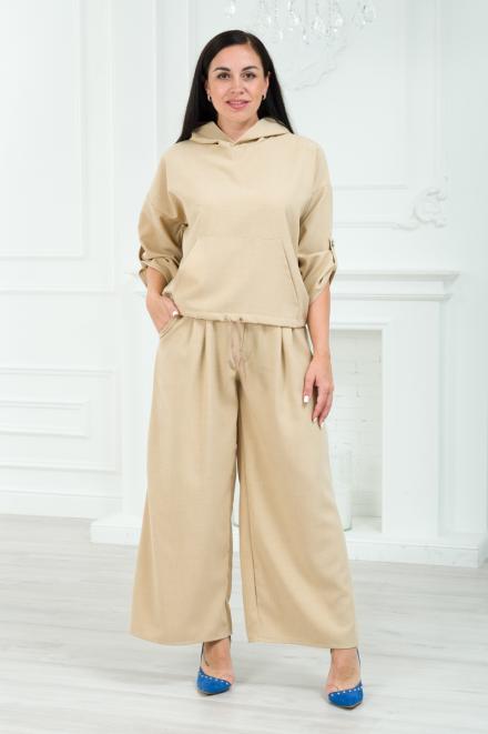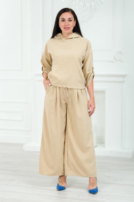 Костюм женский из джемпера и брюк палаццо из льна тайвань Стелла бежевый