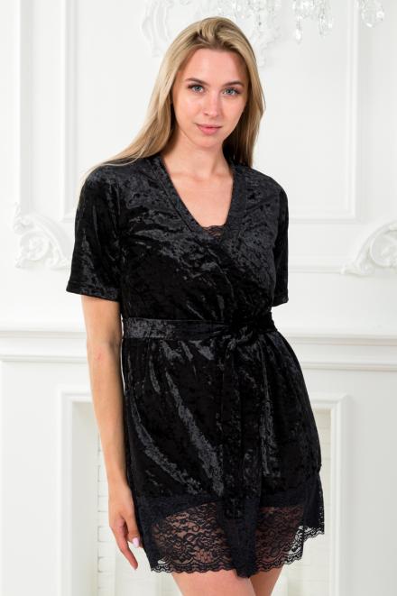 Пижама женская из пеньюара, топа и шорт из бархата Интрига чёрный