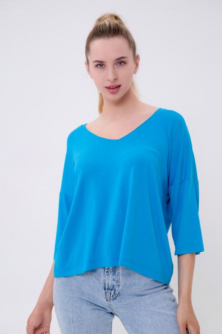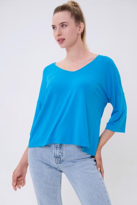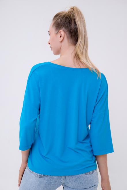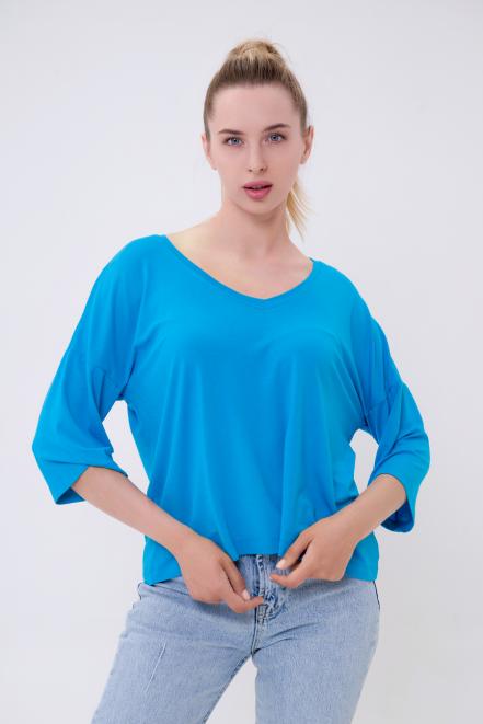 Блуза женская из кулирки Матильда горошек на тёмно-синем