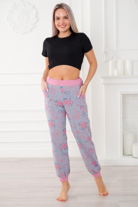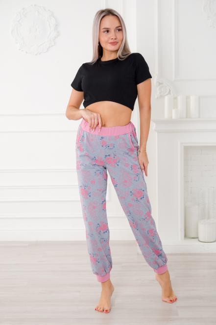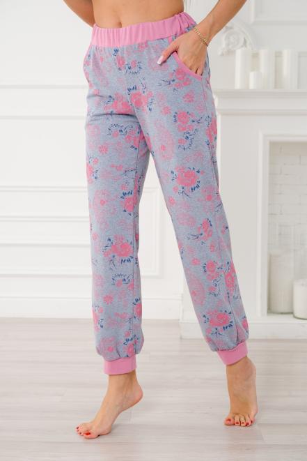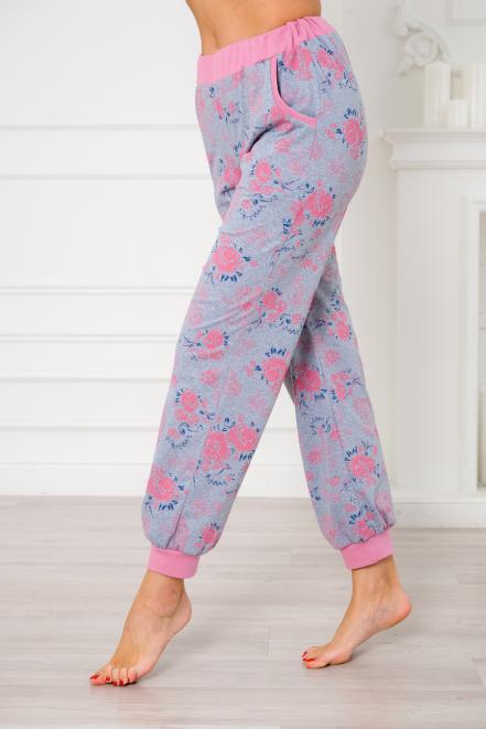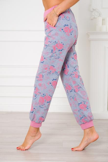 Брюки женские из футера трехнитка с начесом Сова серый меланж