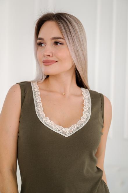 Пижама женская из майки и шорт из рибаны Эрика оливковый мартини