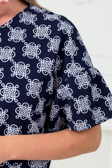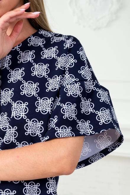 Блуза женская из кулирки Матильда горошек на тёмно-синем