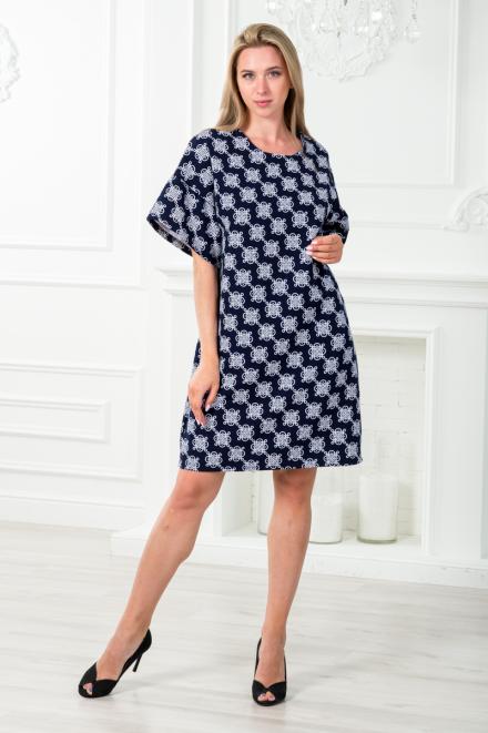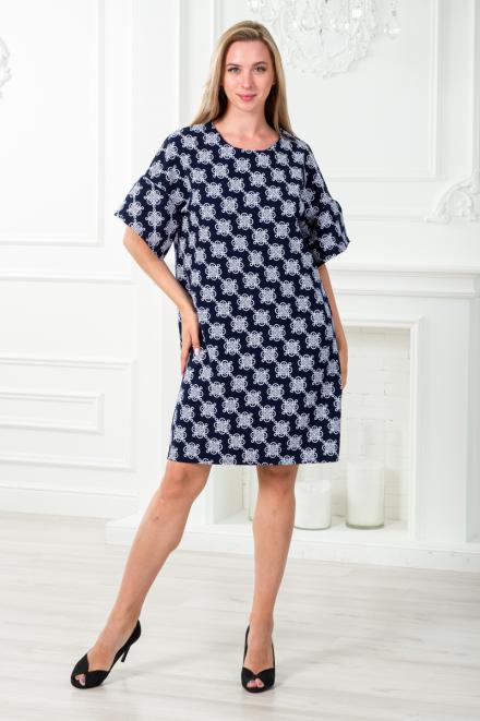 Блуза женская из кулирки Матильда горошек на тёмно-синем макси