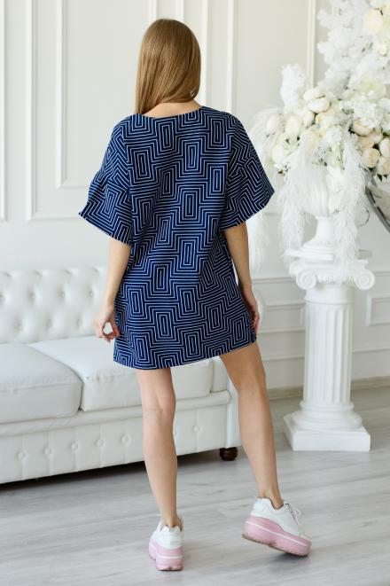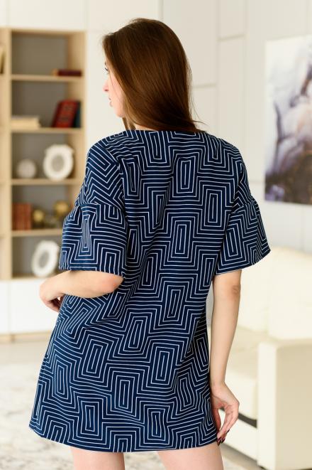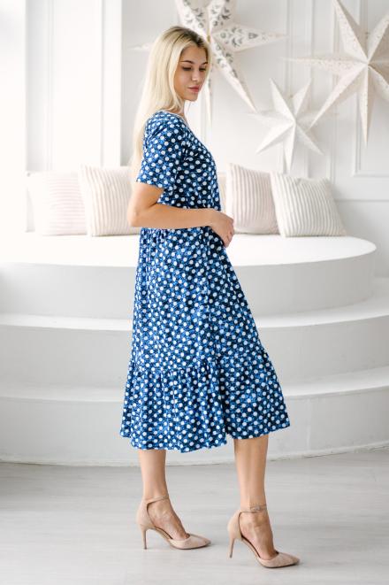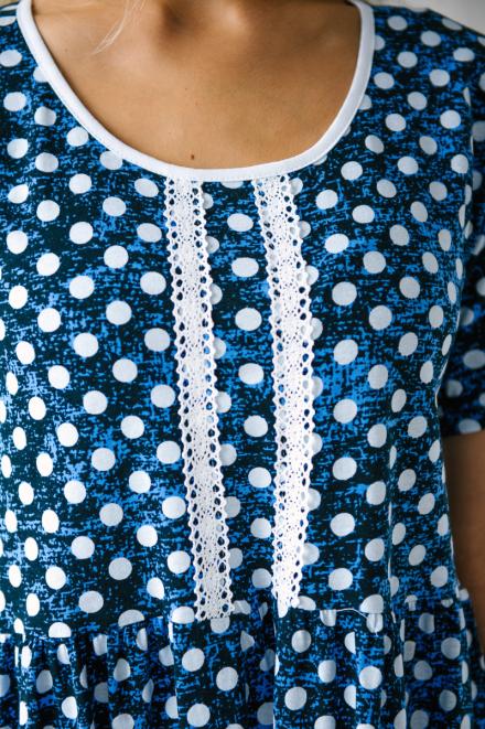 Блуза женская из кулирки Матильда горошек на тёмно-синем макси