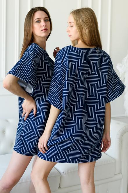 Ночная сорочка из интерлока длинный рукав Соня голубой