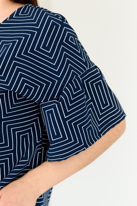 Блуза женская из кулирки Матильда горошек на тёмно-синем