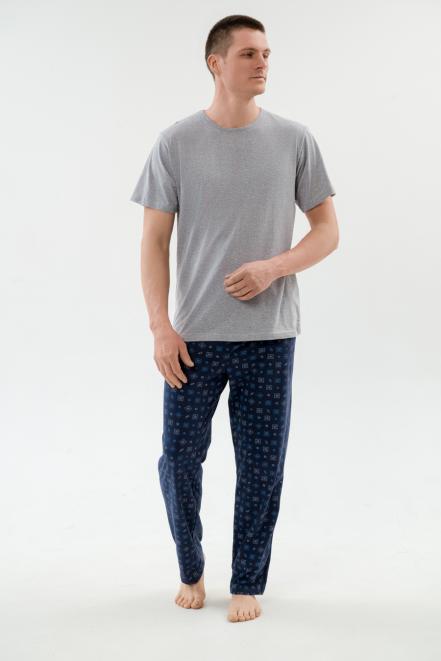 Пижама мужская из футболки с коротким рукавом и брюк из кулирки Генри синий макси