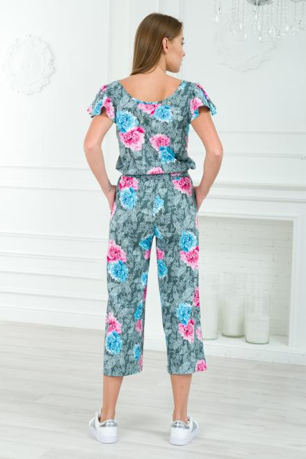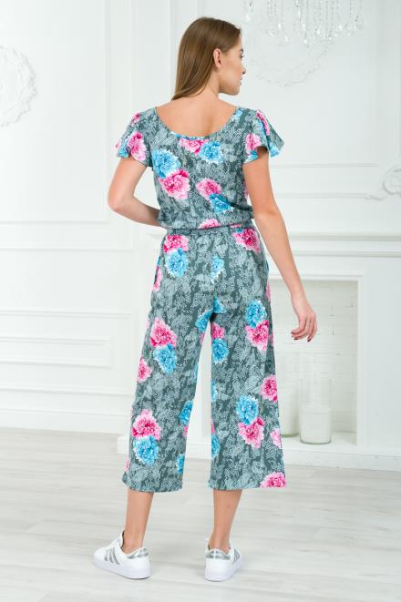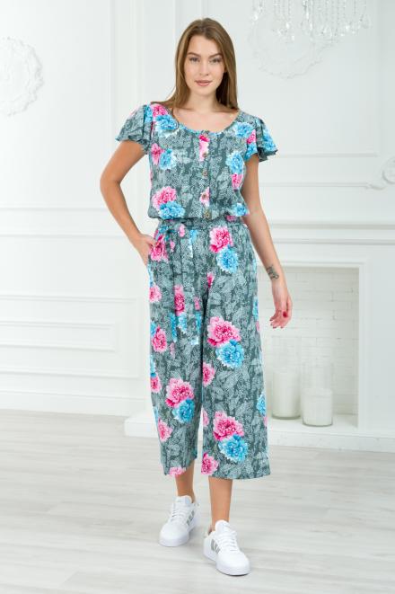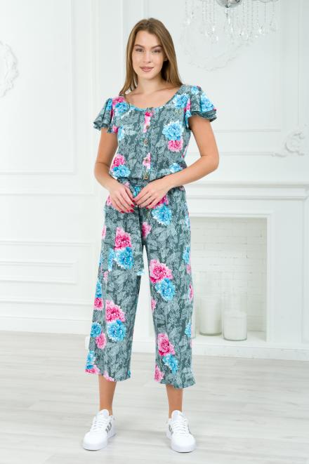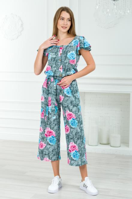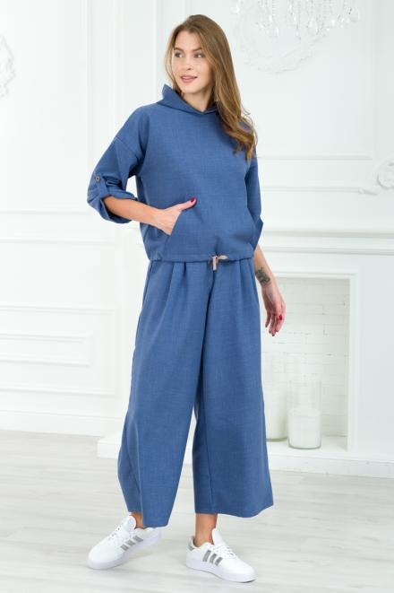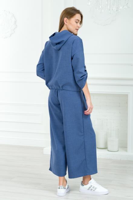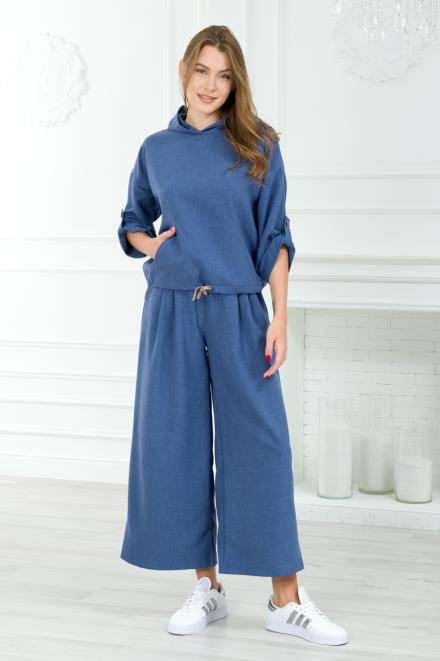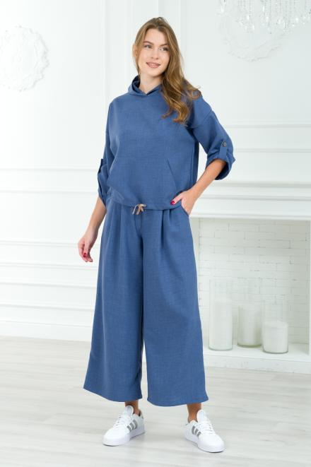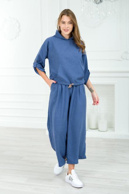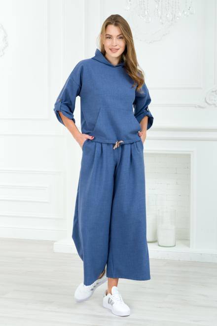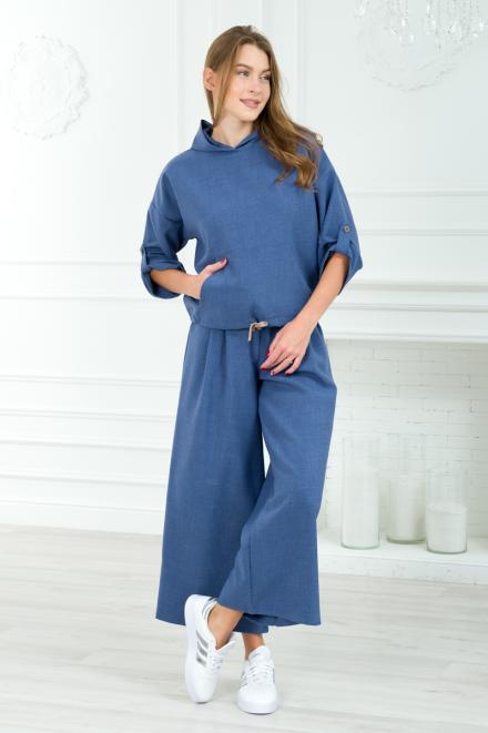Костюм женский из джемпера и брюк палаццо из льна тайвань Стелла синий