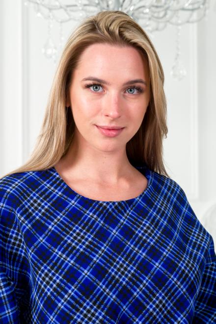 Блуза женская из кулирки Матильда горошек на тёмно-синем макси