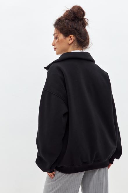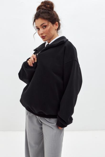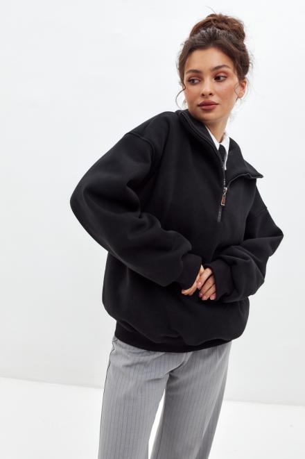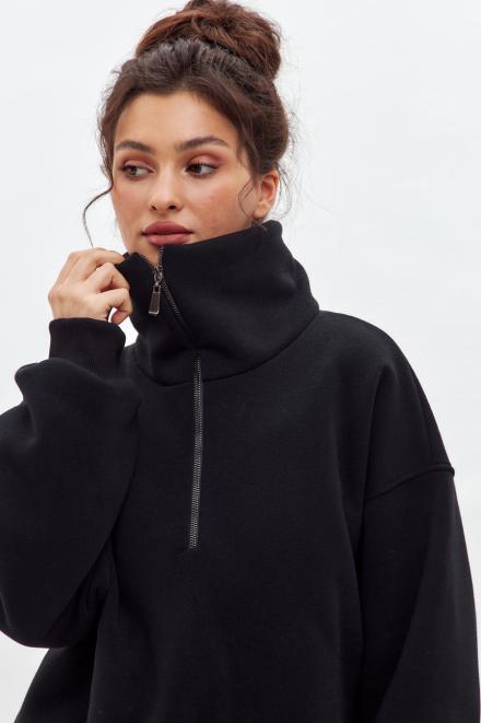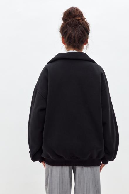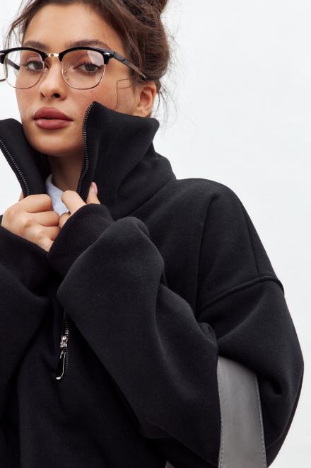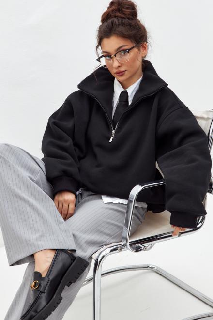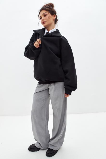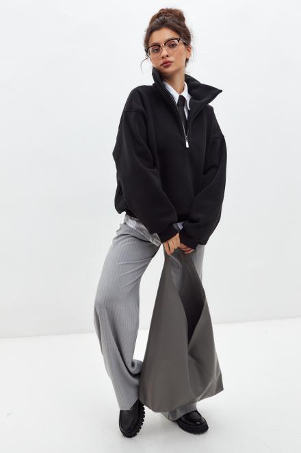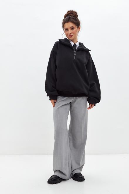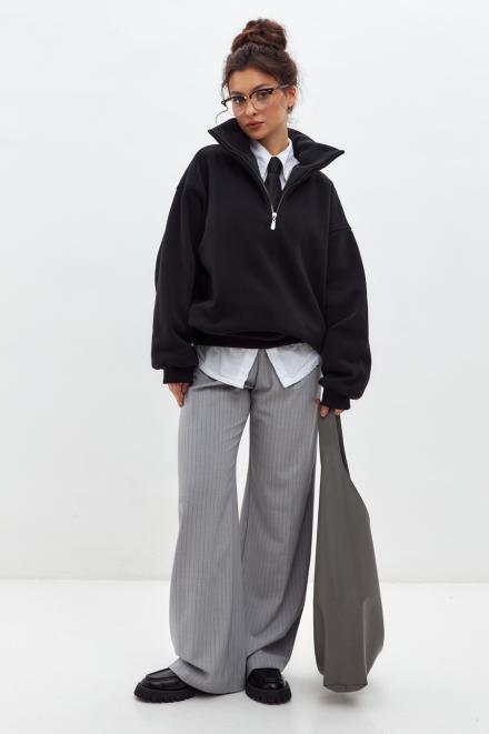 Брюки женские из футера трехнитка с начесом Сова черный макси