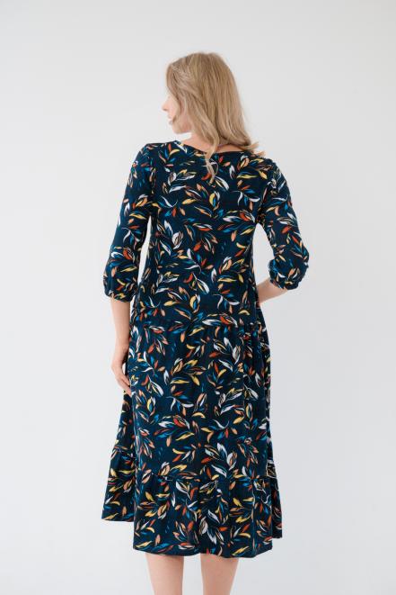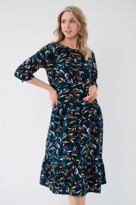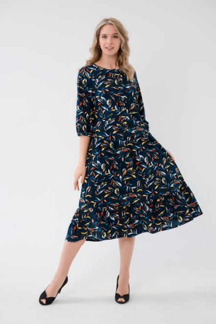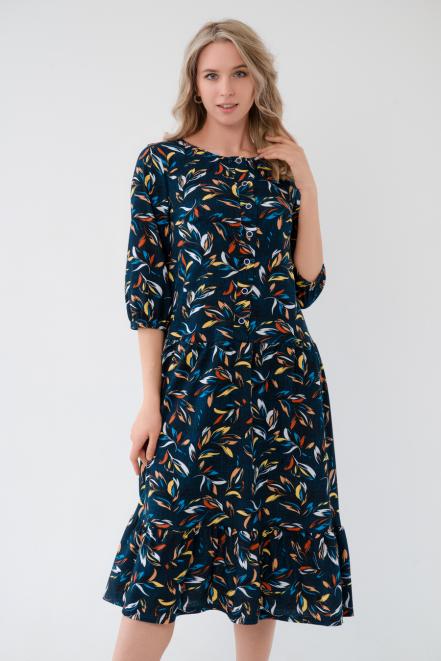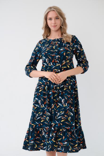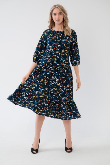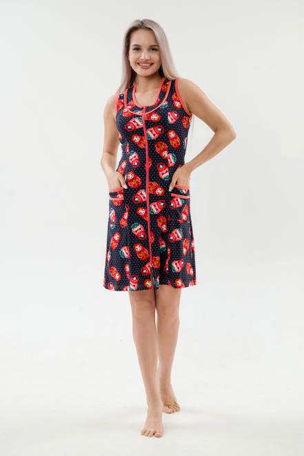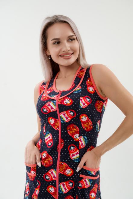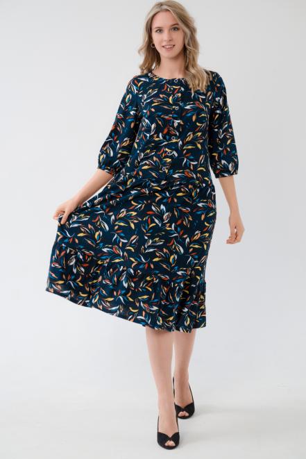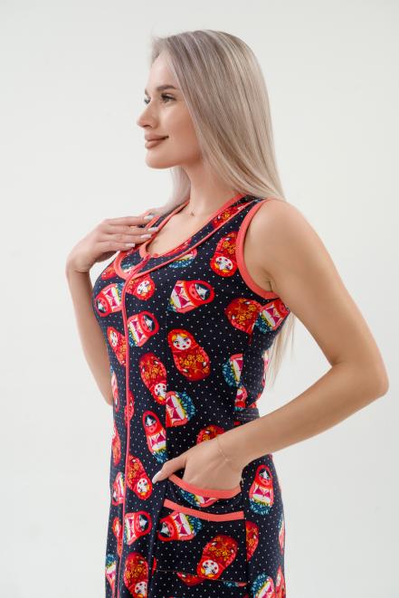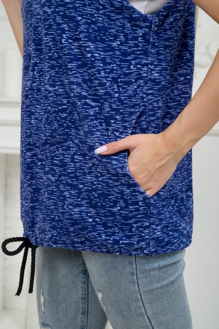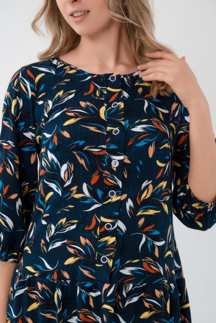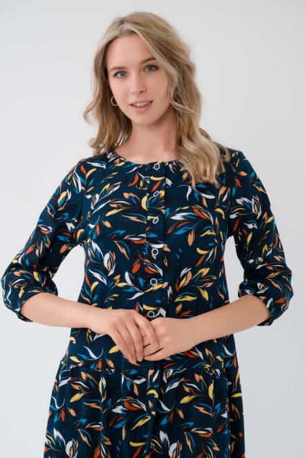 Блуза женская из кулирки Матильда горошек на тёмно-синем макси