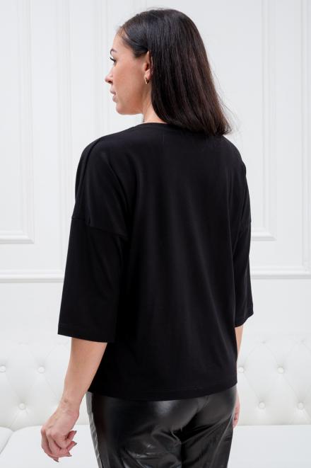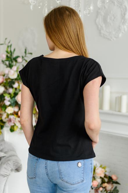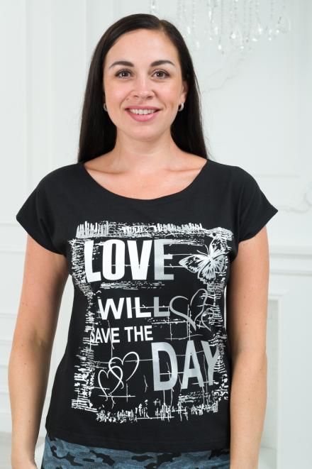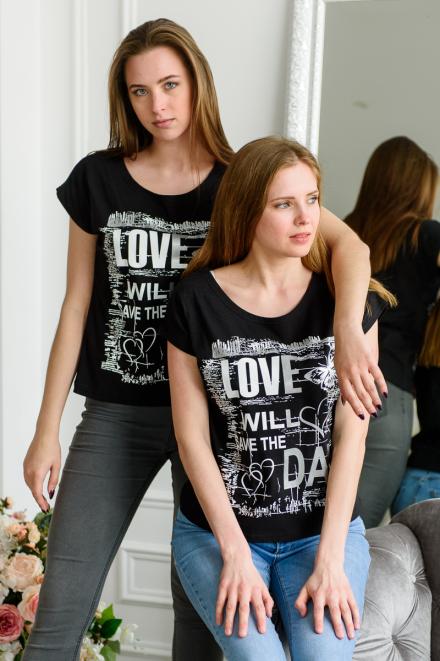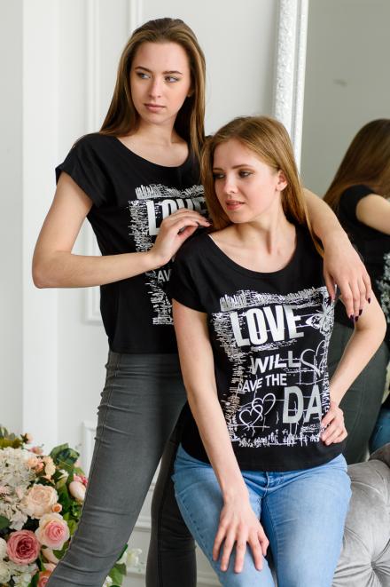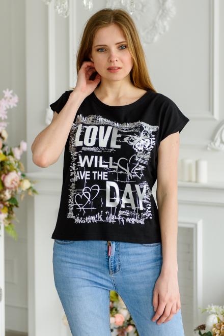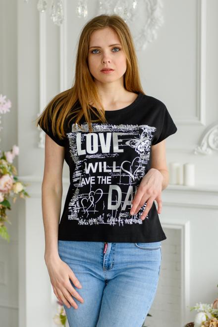 Футболка женская со спущенным плечом из кулирки Лира черный с принтом Love