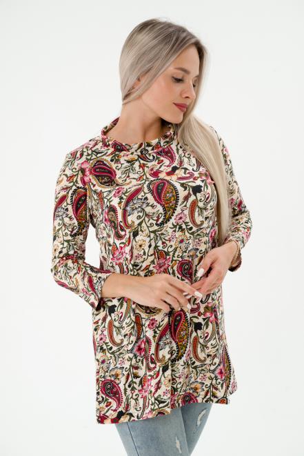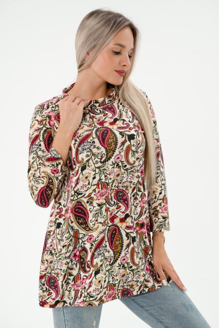 Блуза женская из кулирки Матильда горошек на тёмно-синем