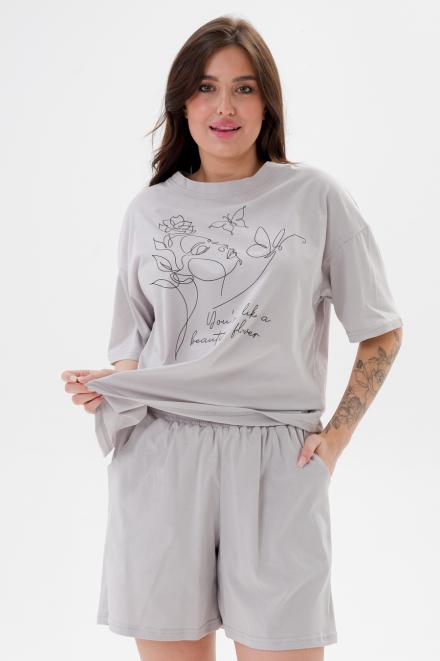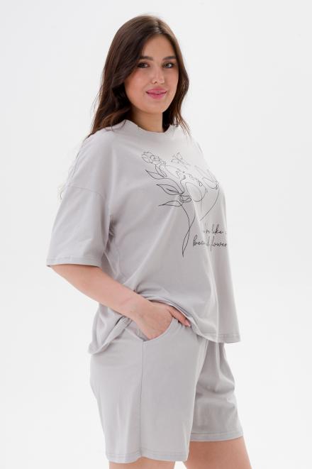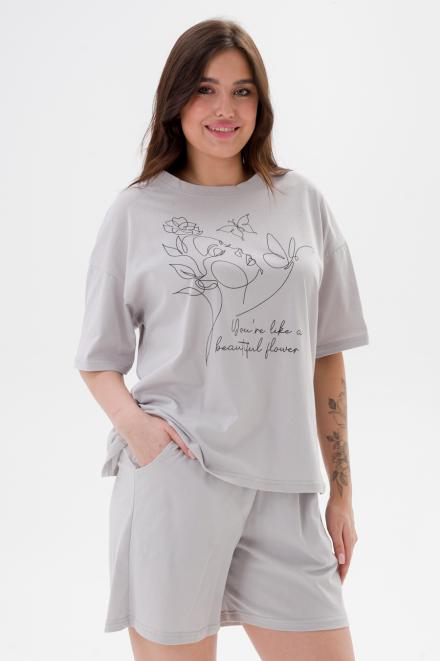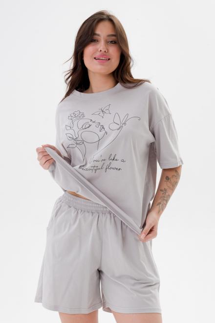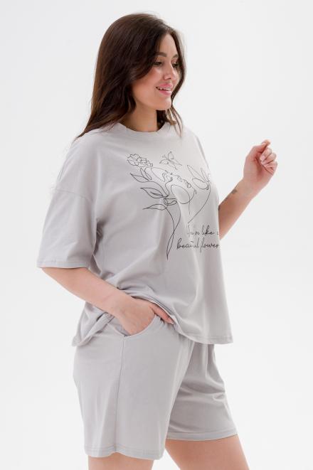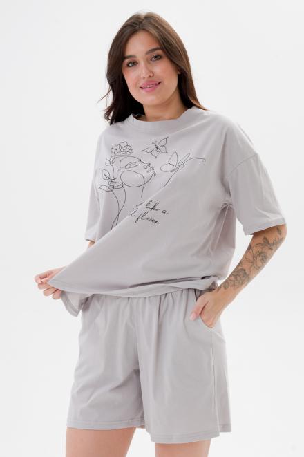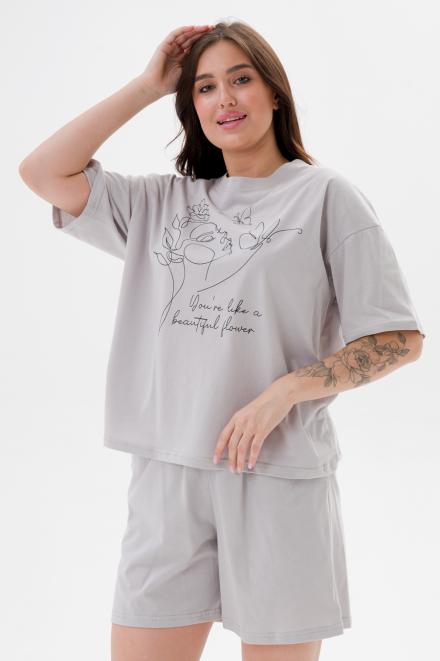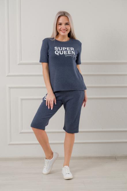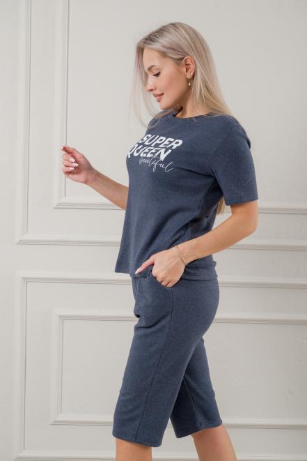 Пижама женская из бридж и футболки из интерлока Королева индиго меланж