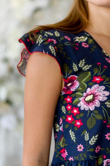 Блуза женская из кулирки Матильда горошек на тёмно-синем макси
