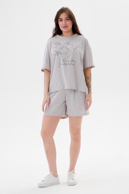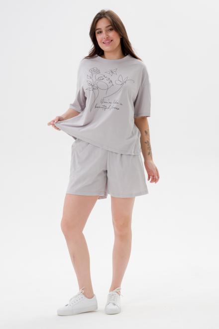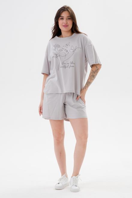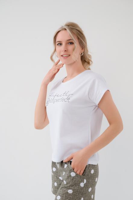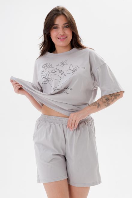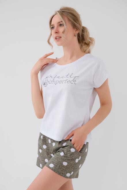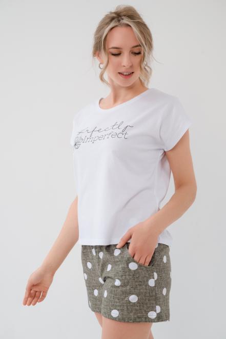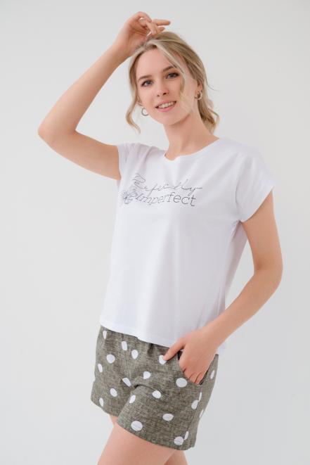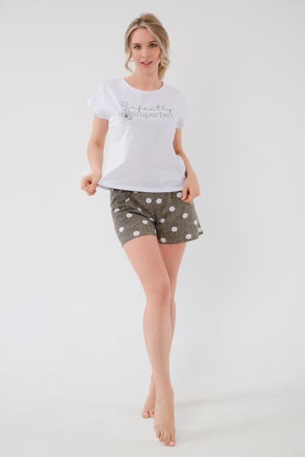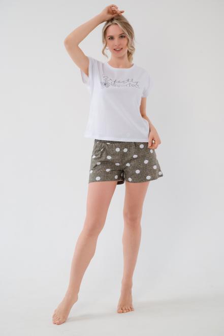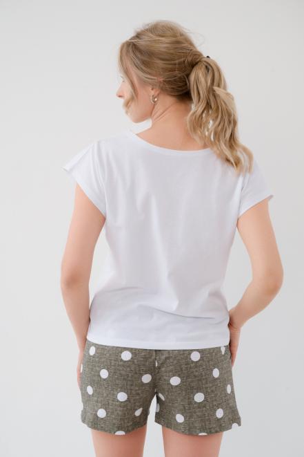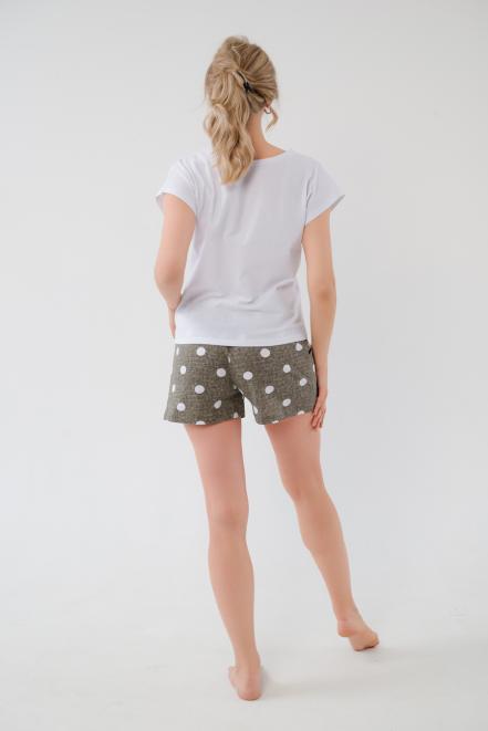 Пижама женская из футболки и шорт из кулирки Алиса горох хаки