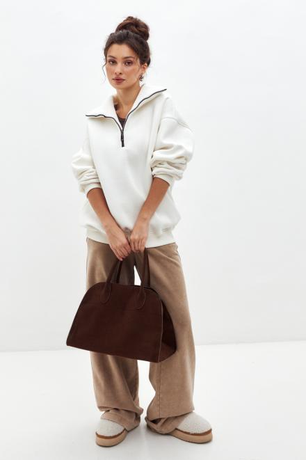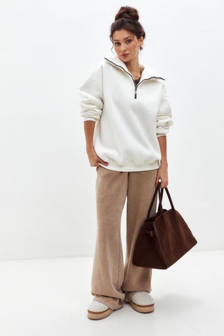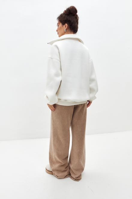 Брюки женские из футера трехнитка с начесом Сова экрю макси
