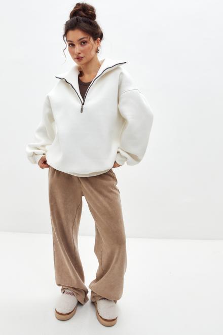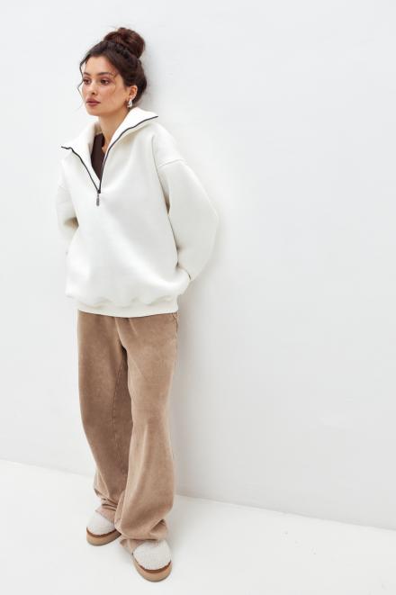 Брюки женские из футера трехнитка с начесом Сова экрю