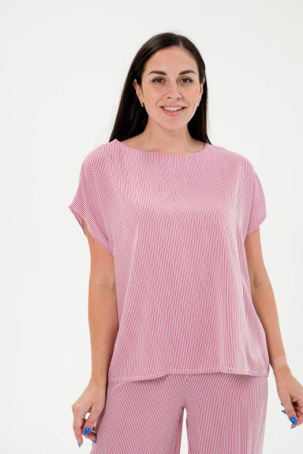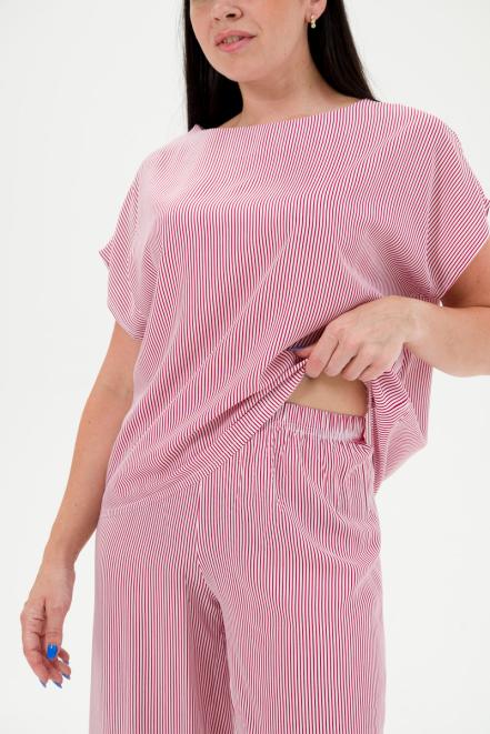 Костюм женский из туники и брюк штапель Диана красная полоса