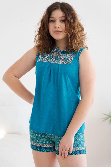 Пижама женская из майки и шорт из кулирки Лисандра бирюза