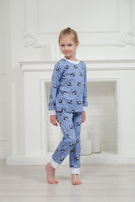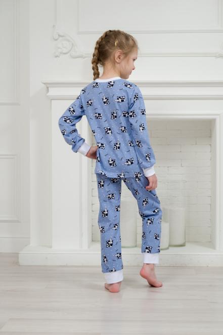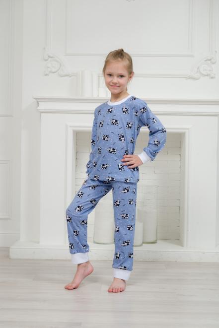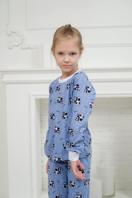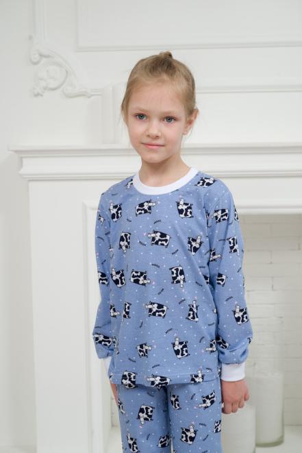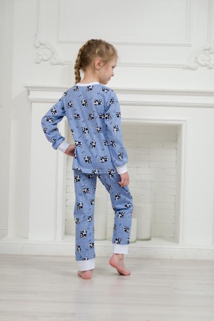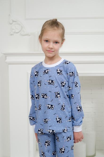 Пижама детская из джемпера и брюк из кулирки Коровы голубой