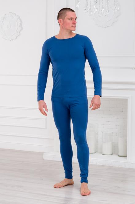 Нательное белье футболка с длиным рукавом и кальсоны кулирка с лайкрой синий макс