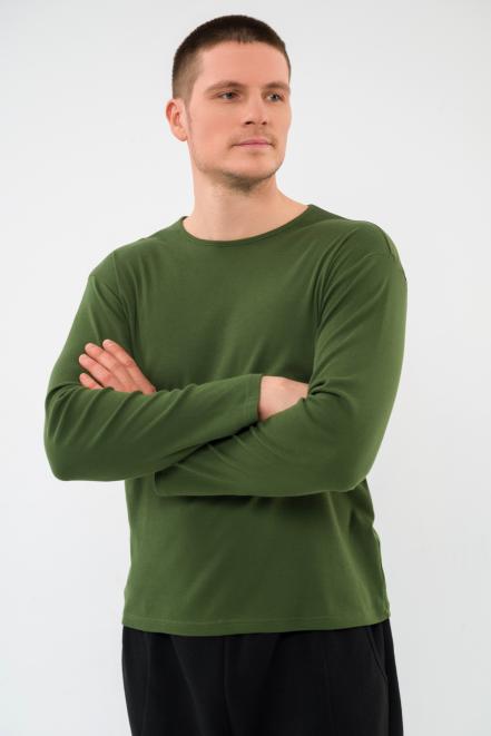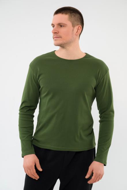 Футболка мужская длинный рукав из кулирки цифра зеленый