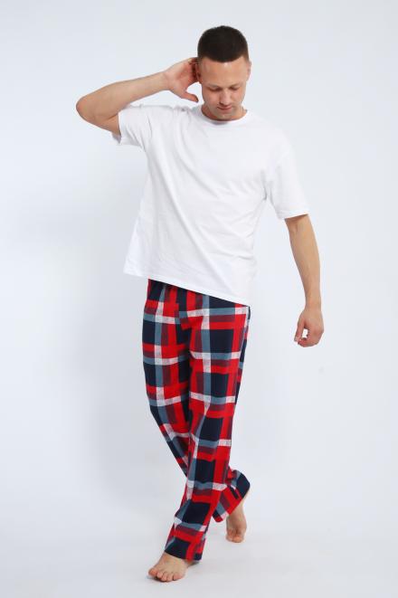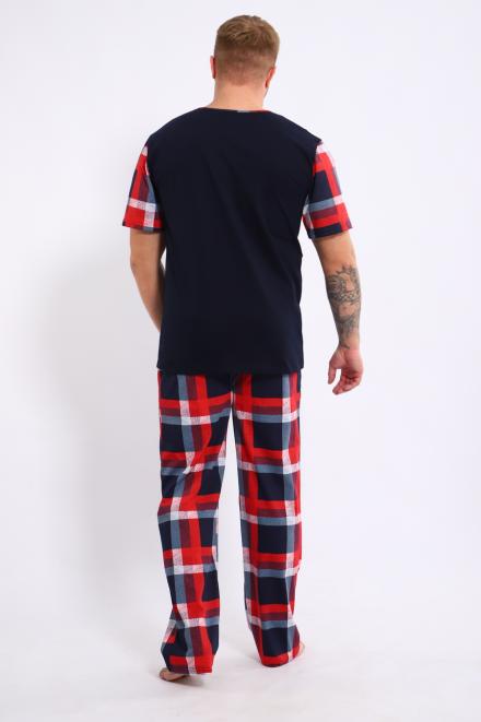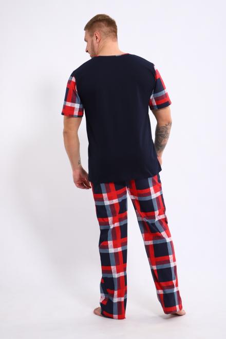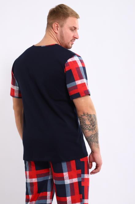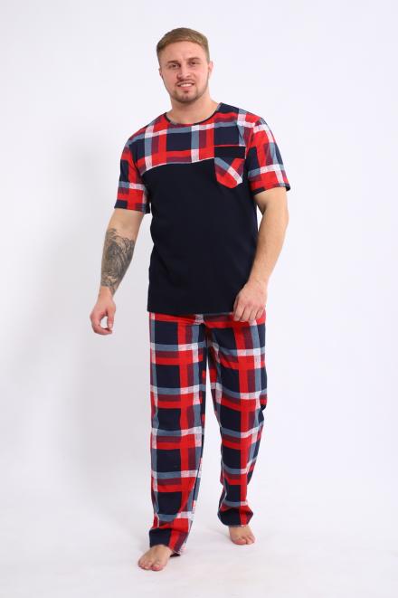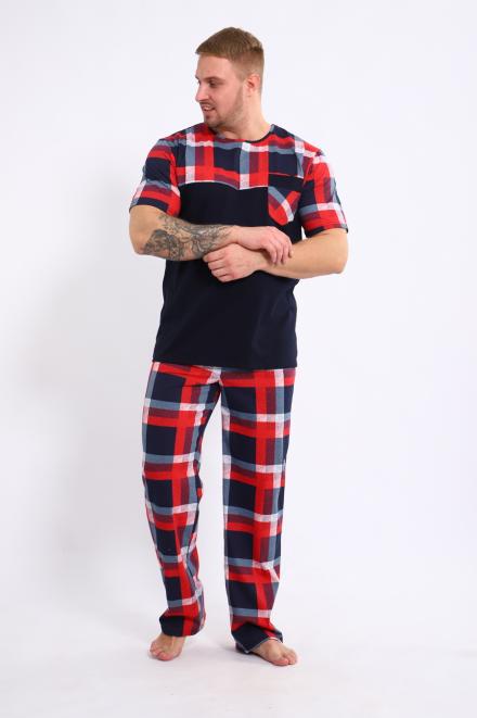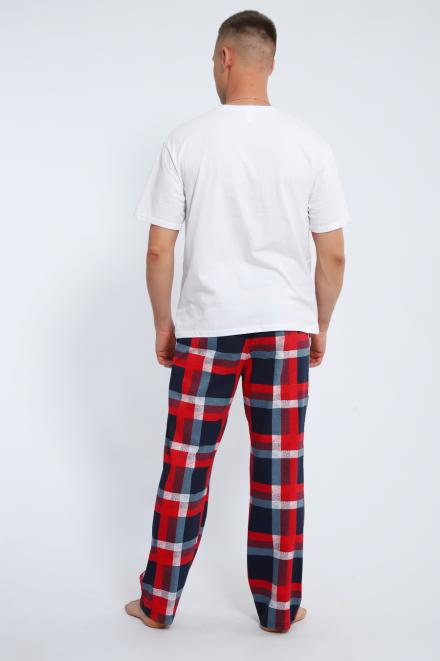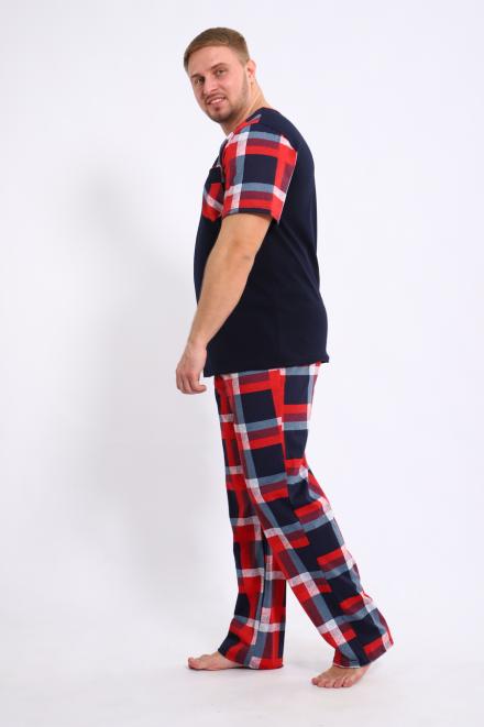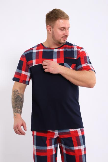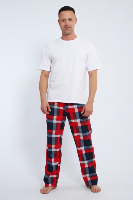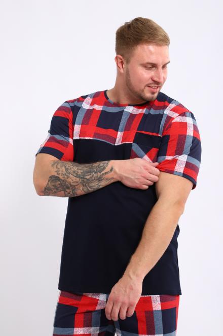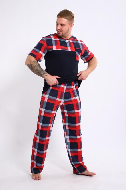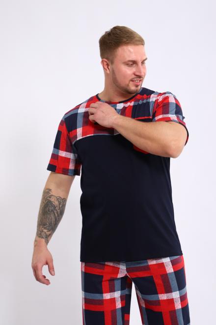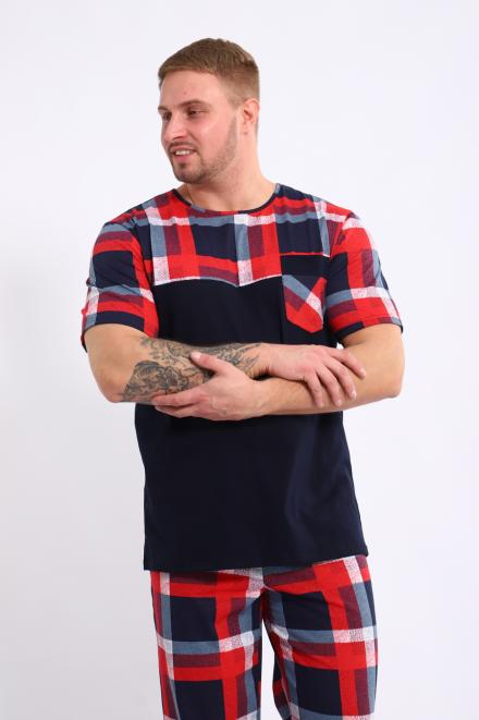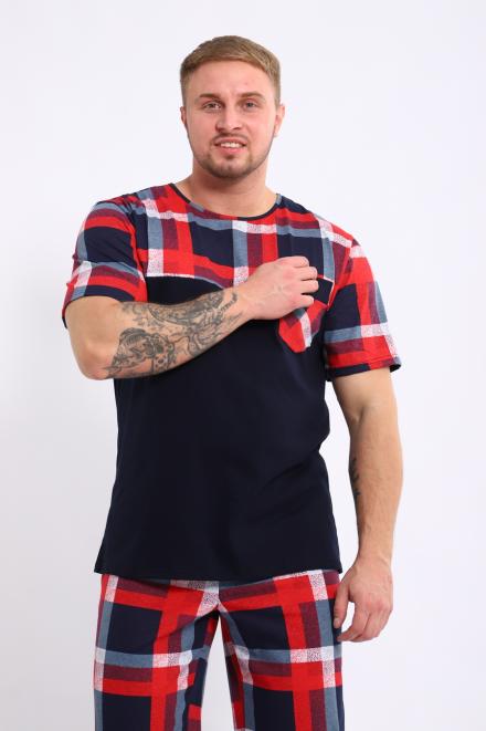 Пижама мужская из футболки с коротким рукавом и брюк из кулирки Макс красная клетка