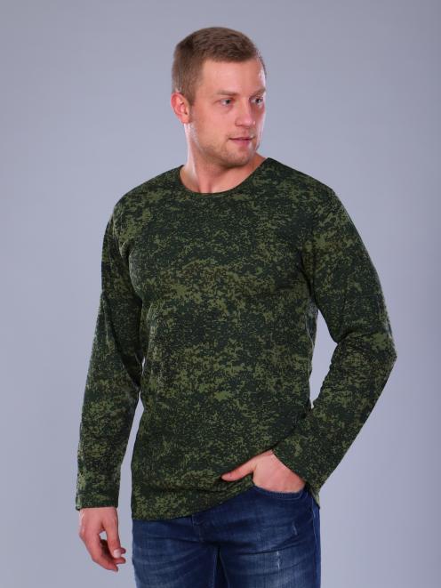 Футболка мужская длинный рукав из кулирки цифра зеленый макс