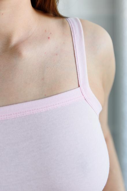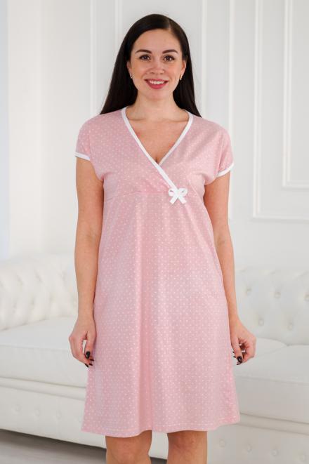 Ночная сорочка из кулирки Социал спущенное плечо горошек нежно-розовый