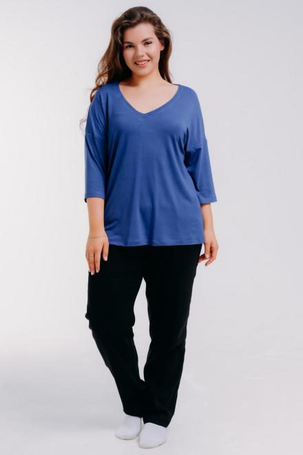 Нательное белье футболка с длиным рукавом и кальсоны кулирка с лайкрой синий макс